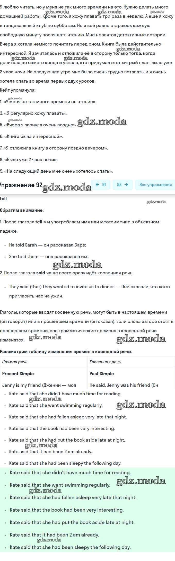 ОТВЕТ на задание № 92 Учебник по Английскому языку 8 класс Биболетова Enjoy English