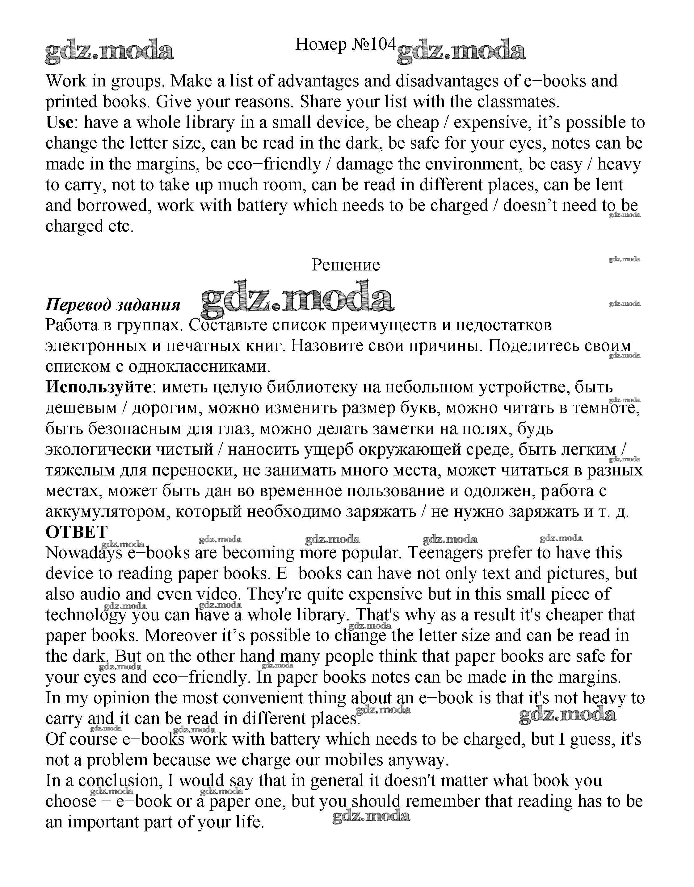 ОТВЕТ на задание № 104 Учебник по Английскому языку 8 класс Биболетова Enjoy English