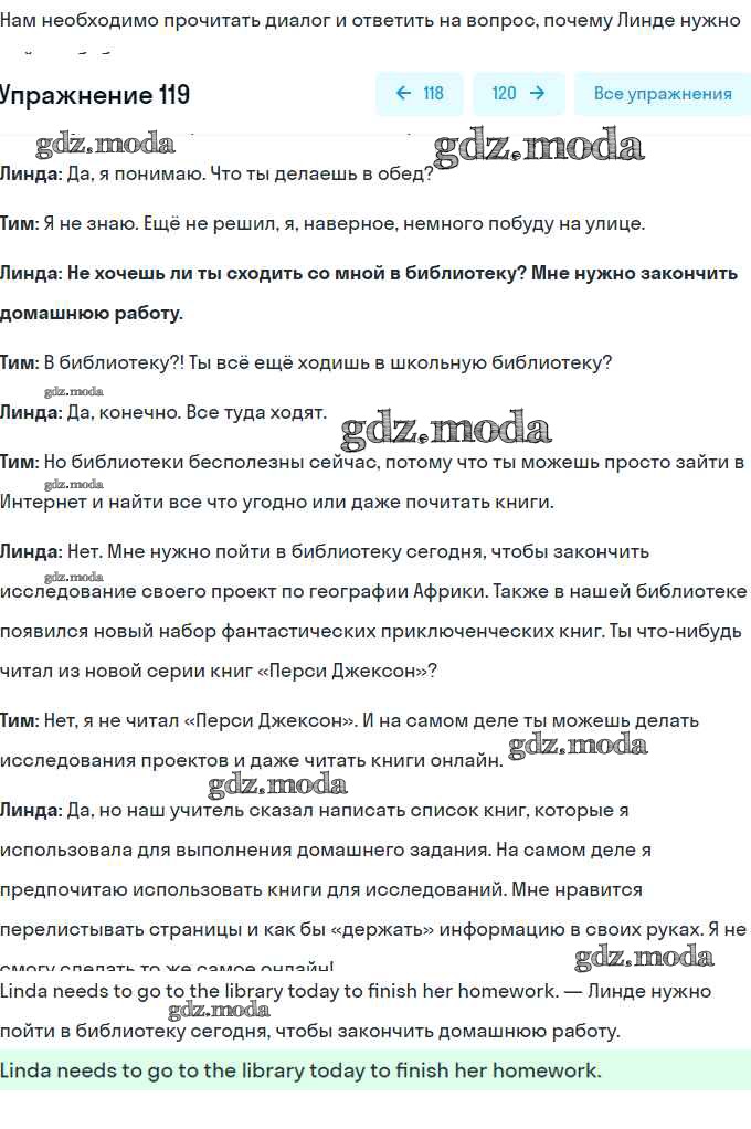 ОТВЕТ на задание № 119 Учебник по Английскому языку 8 класс Биболетова Enjoy English