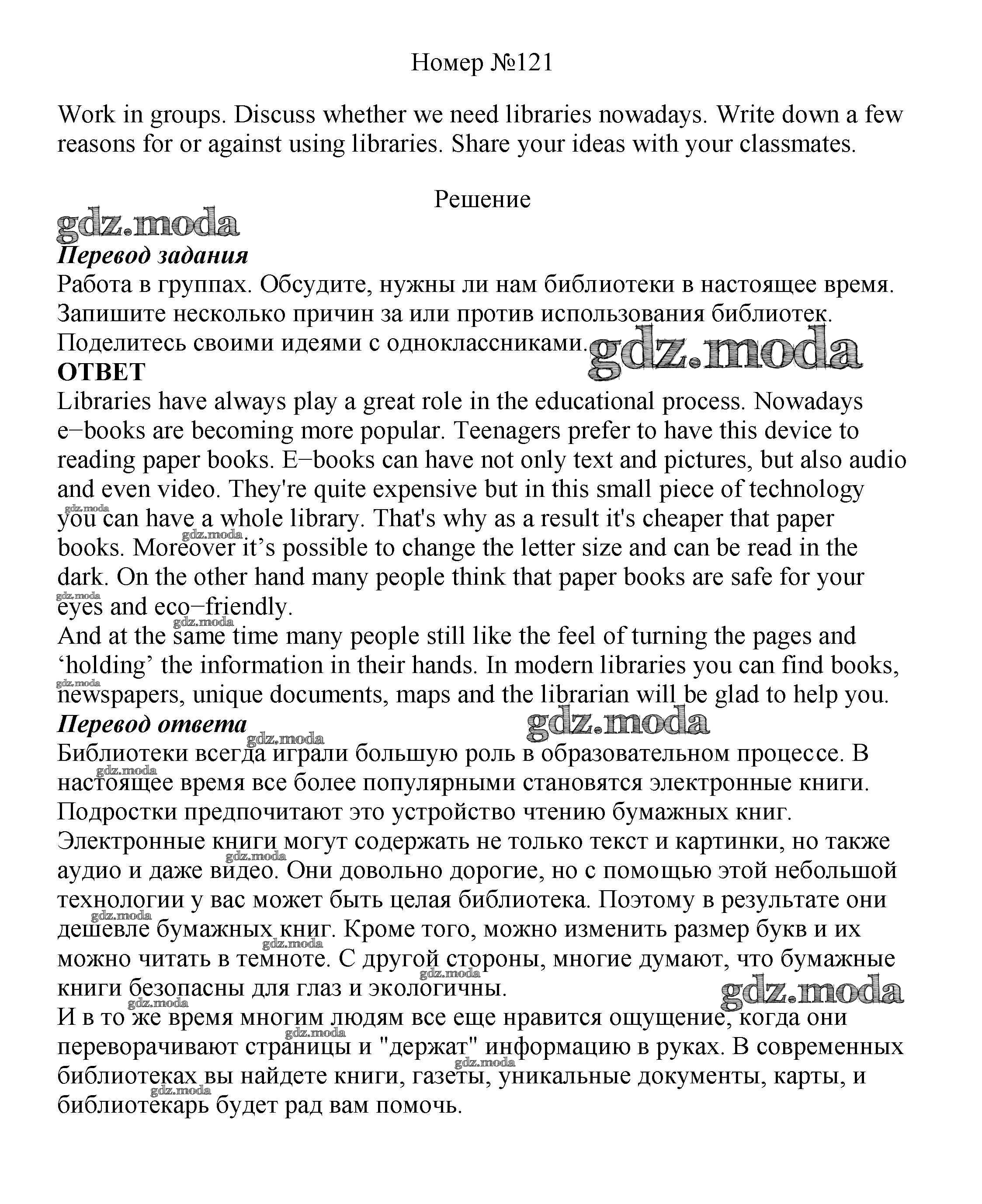 ОТВЕТ на задание № 121 Учебник по Английскому языку 8 класс Биболетова Enjoy English