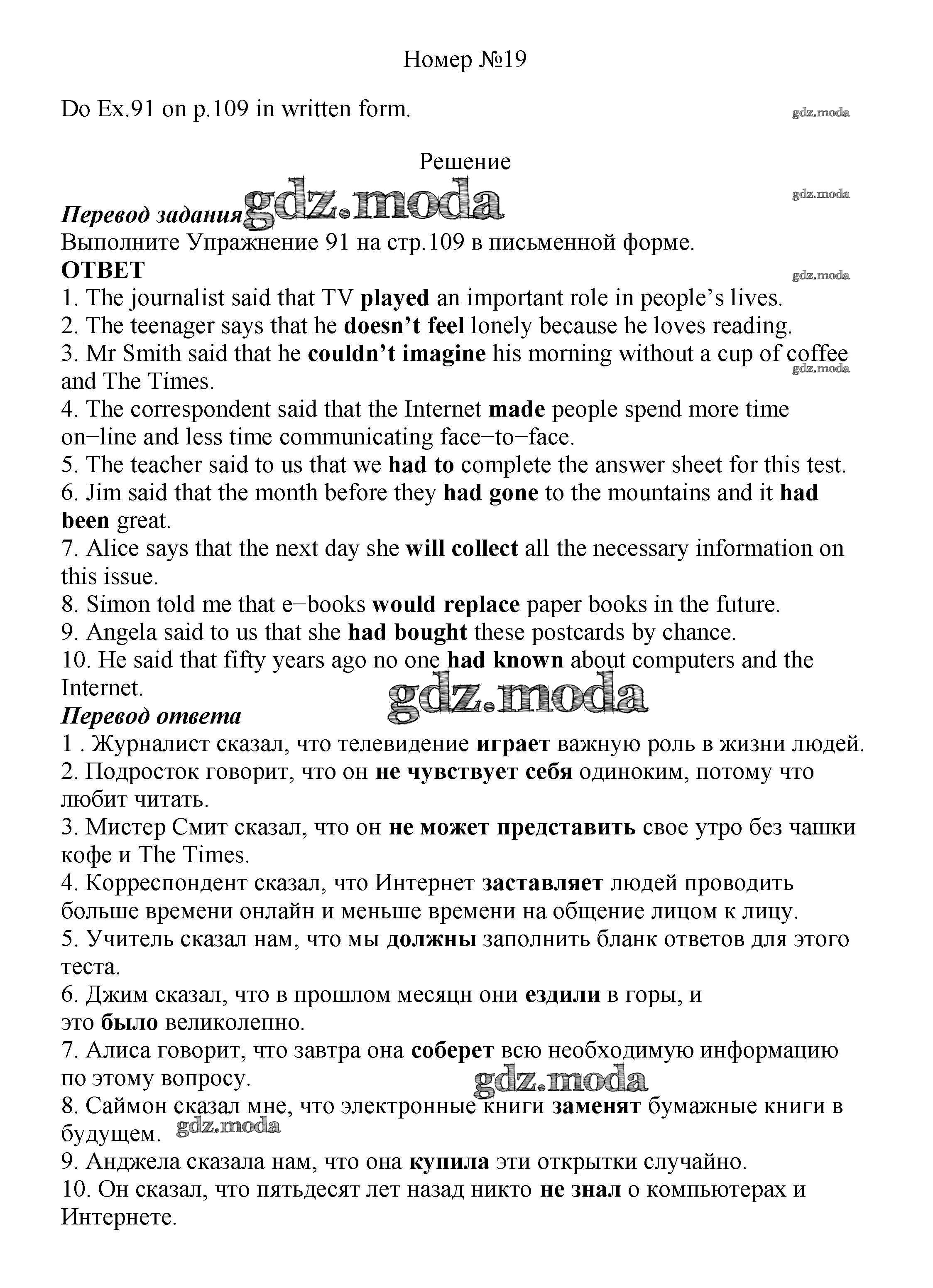 ОТВЕТ на задание № 19 Учебник по Английскому языку 8 класс Биболетова Enjoy English
