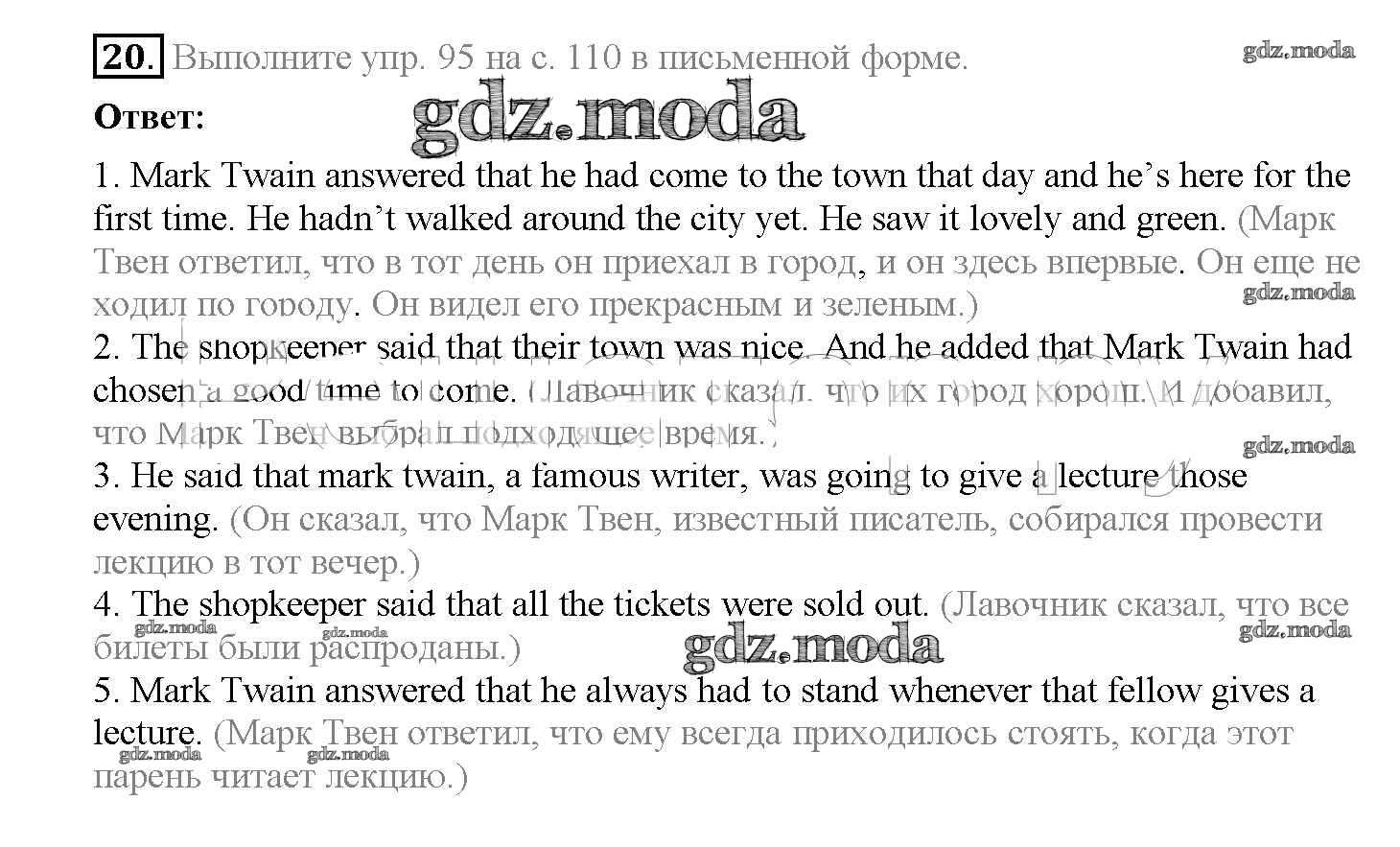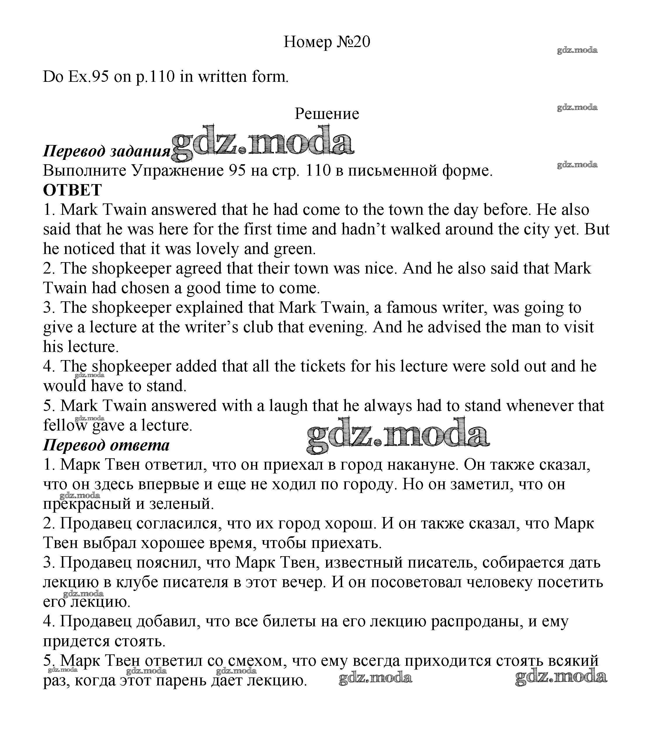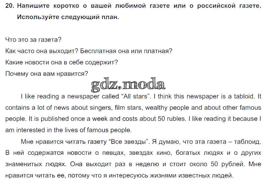 ОТВЕТ на задание № 20 Учебник по Английскому языку 8 класс Биболетова Enjoy English