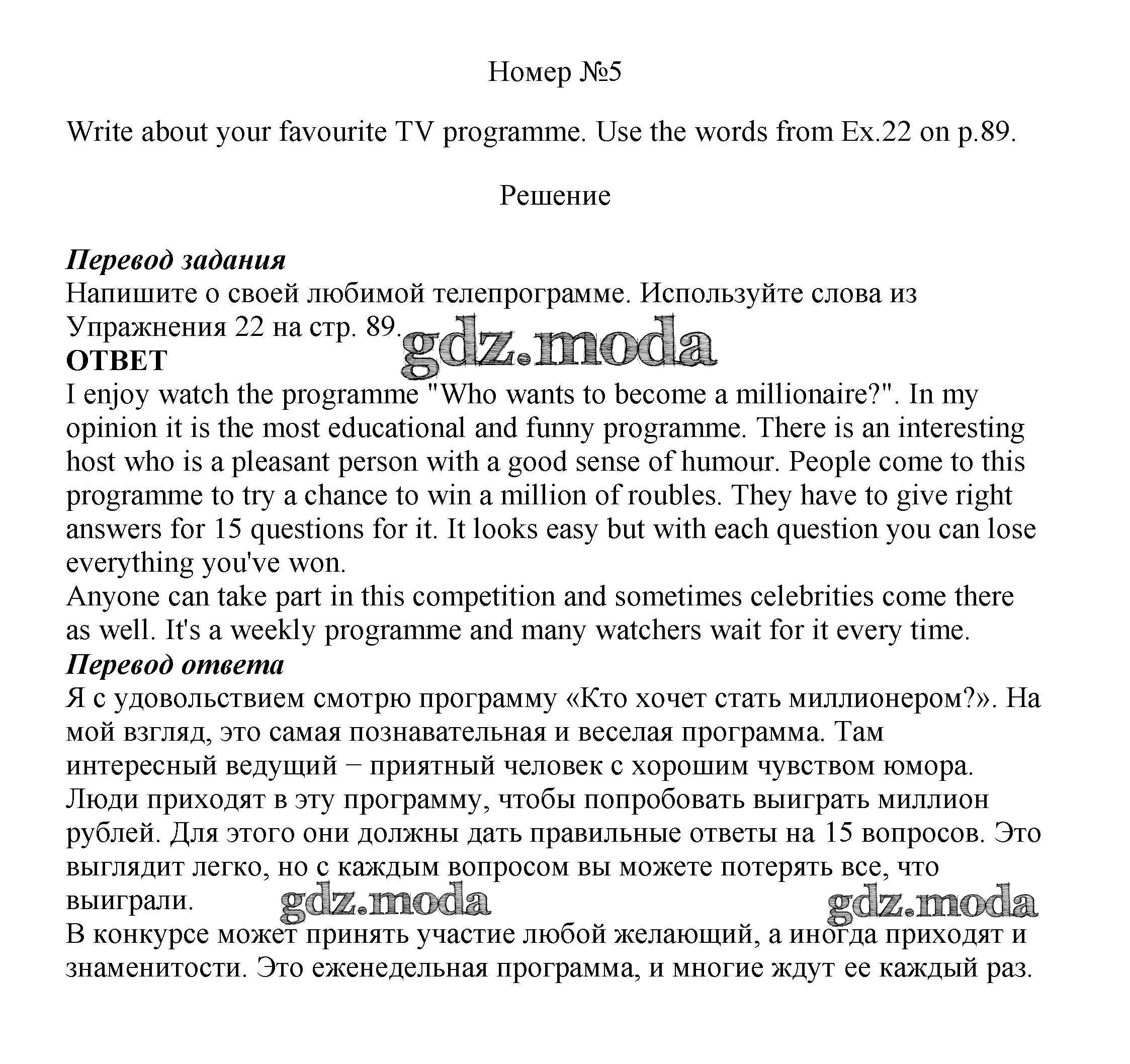 ОТВЕТ на задание № 5 Учебник по Английскому языку 8 класс Биболетова Enjoy English