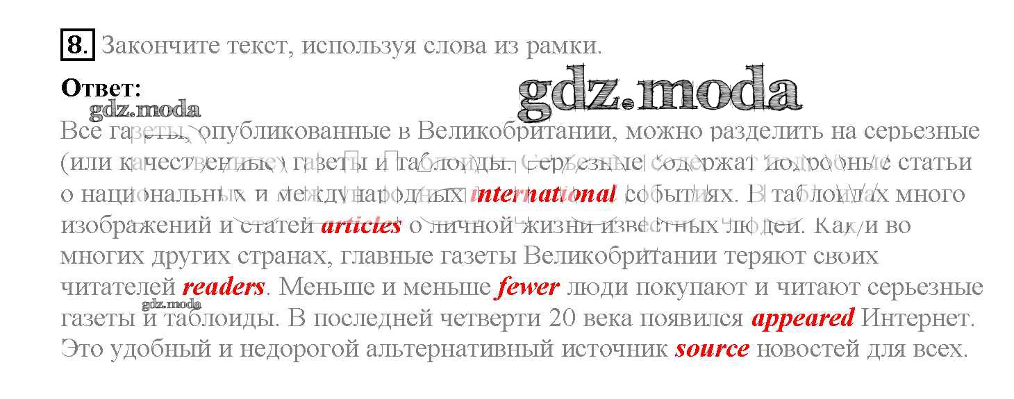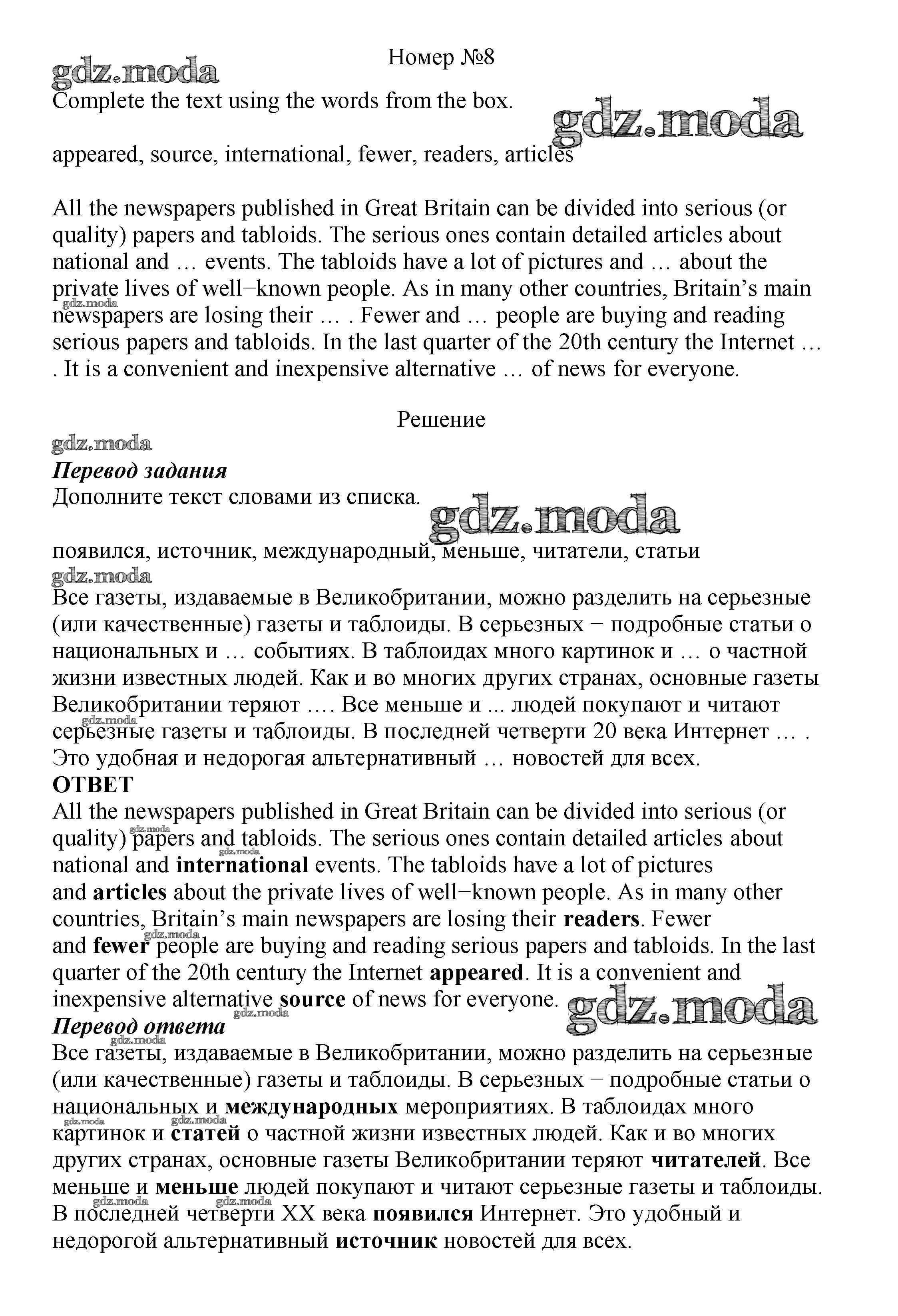 ОТВЕТ на задание № 8 Учебник по Английскому языку 8 класс Биболетова Enjoy English