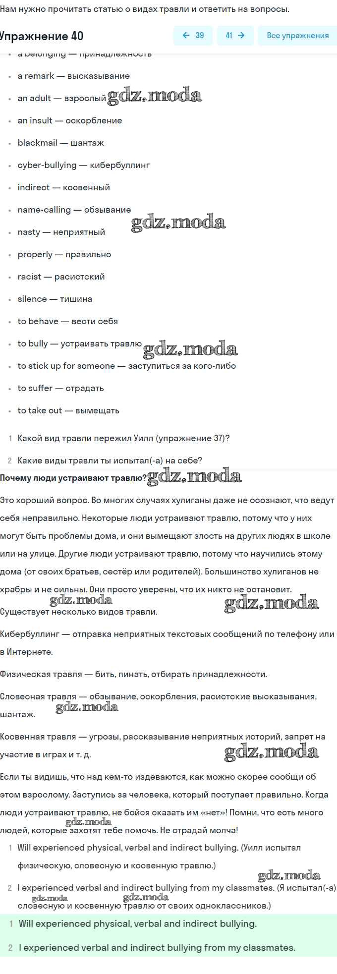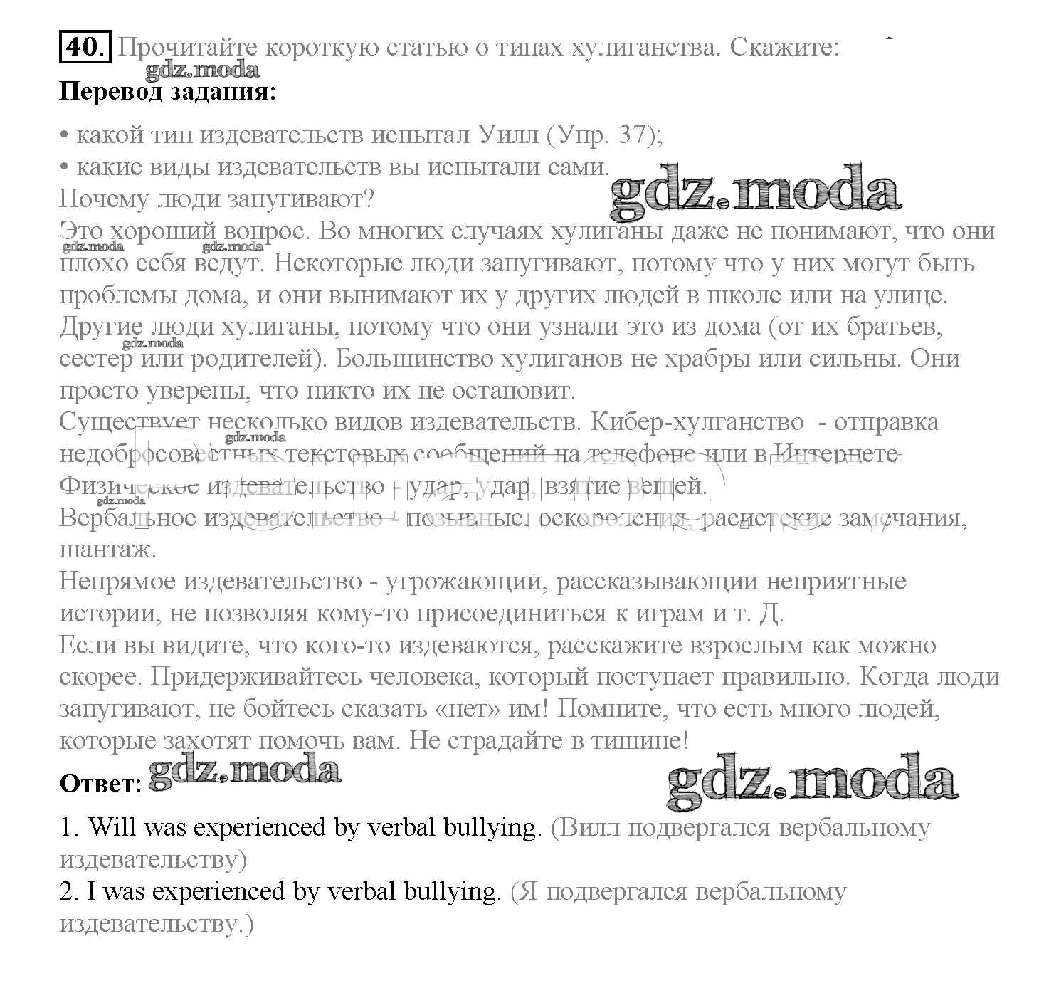 ОТВЕТ на задание № 40 Учебник по Английскому языку 8 класс Биболетова Enjoy English