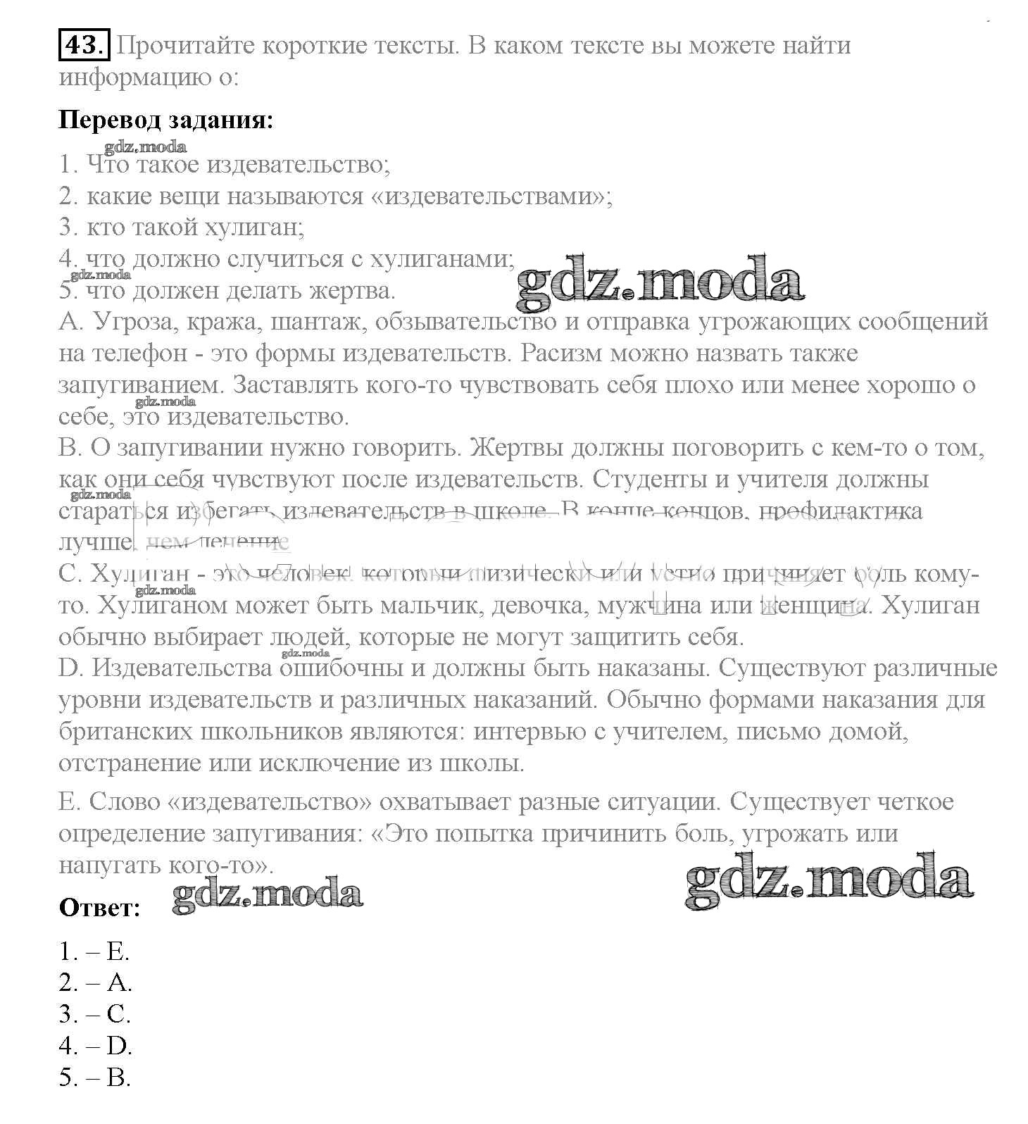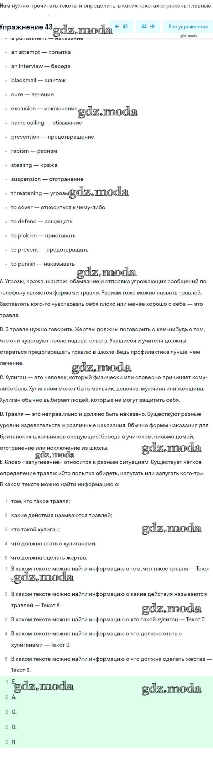 ОТВЕТ на задание № 43 Учебник по Английскому языку 8 класс Биболетова Enjoy English