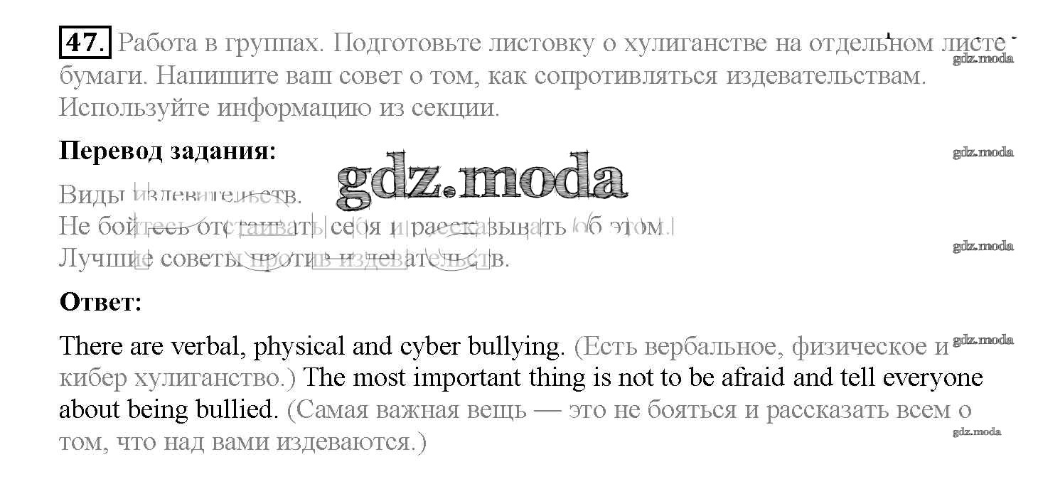 ОТВЕТ на задание № 47 Учебник по Английскому языку 8 класс Биболетова Enjoy English