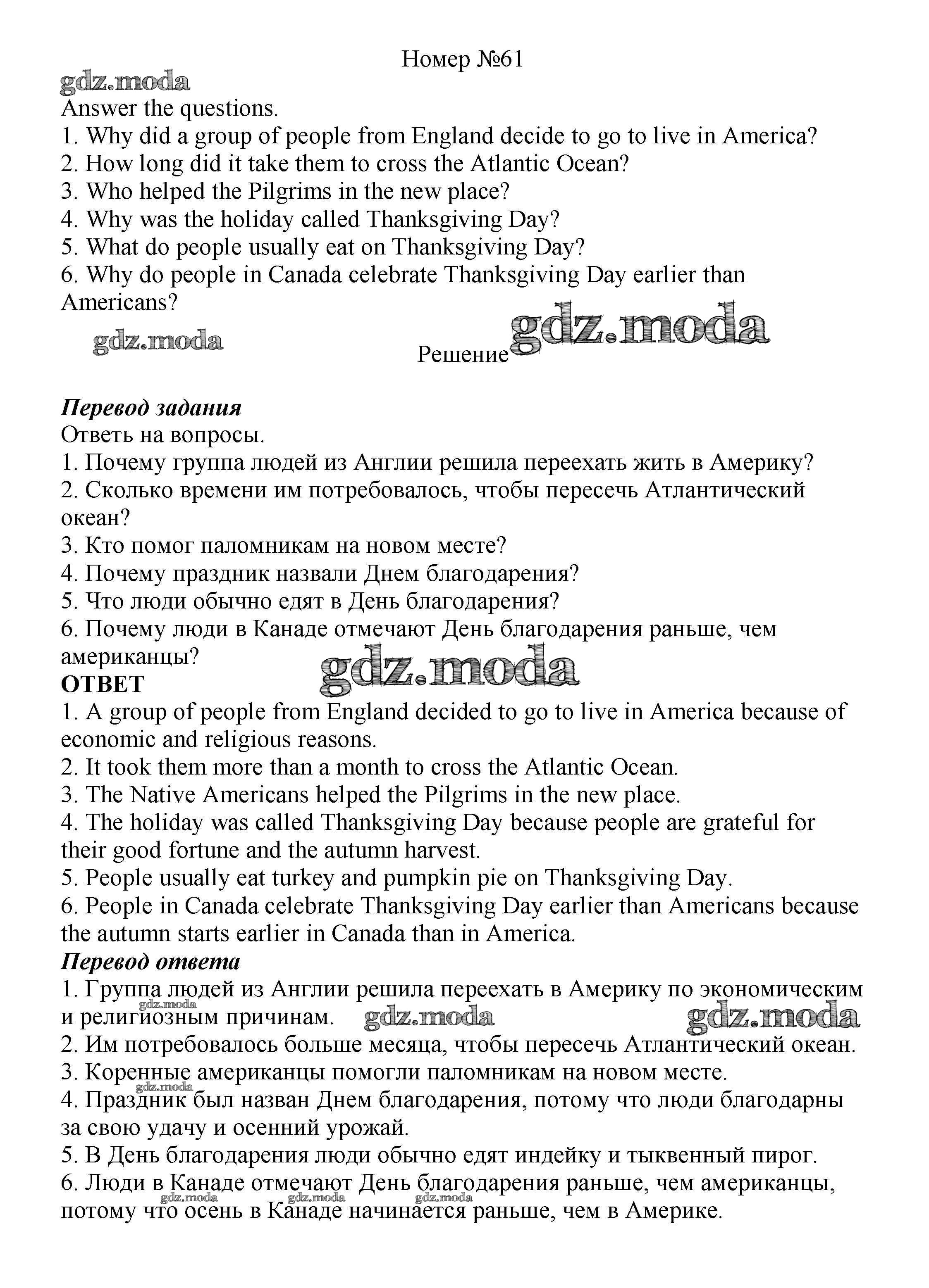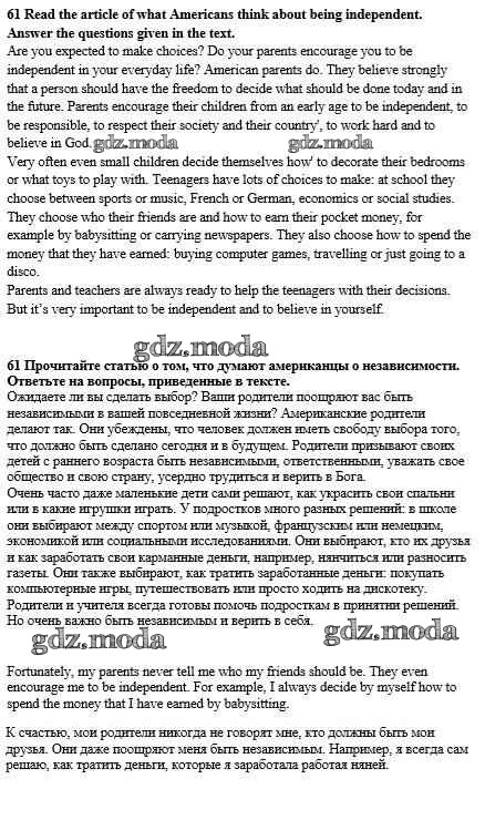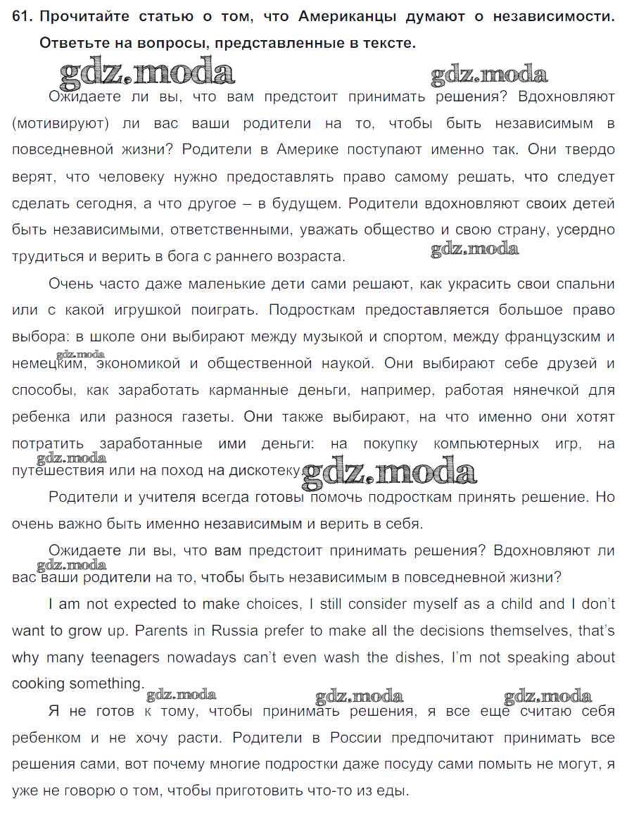 ОТВЕТ на задание № 61 Учебник по Английскому языку 8 класс Биболетова Enjoy English