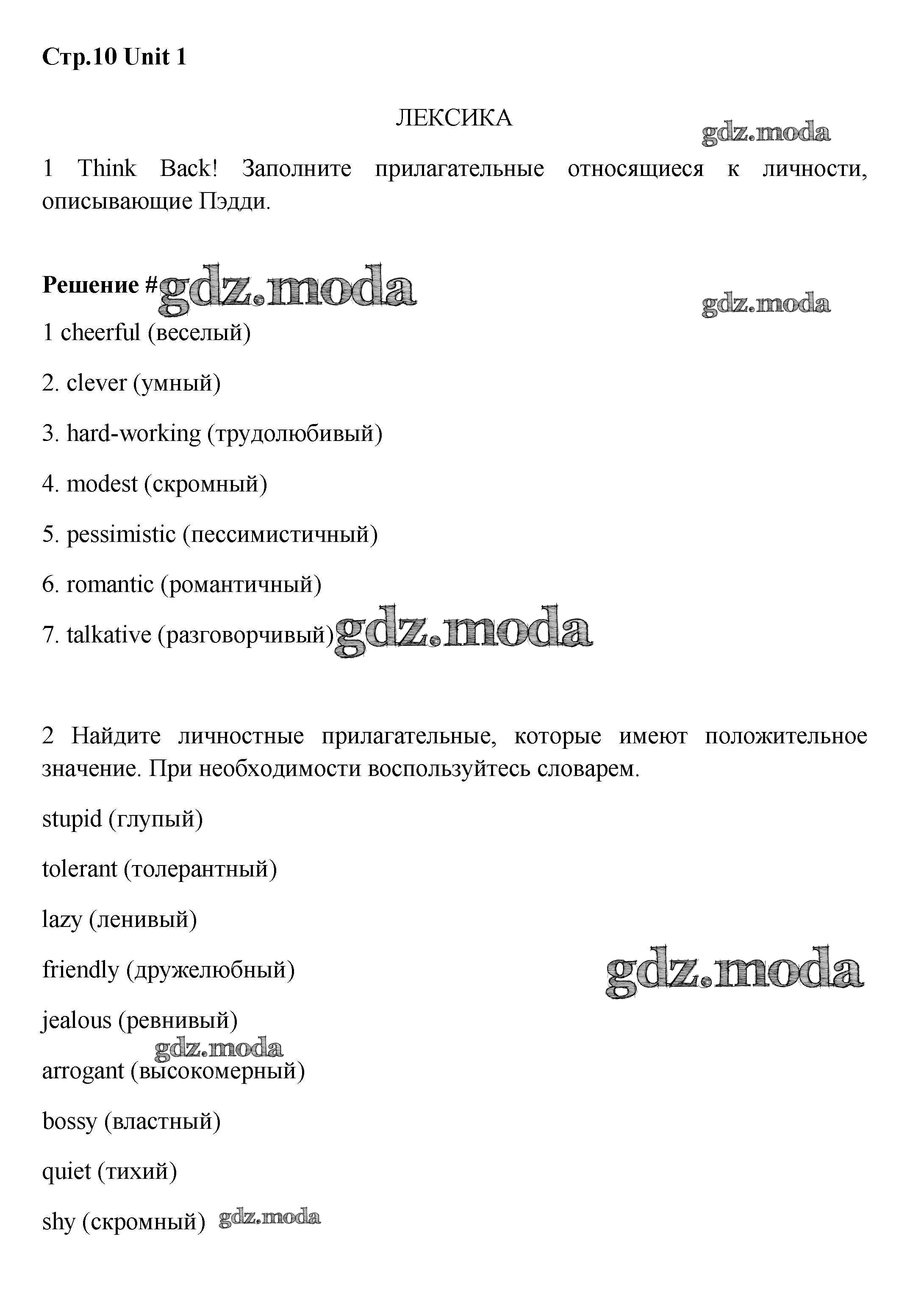ОТВЕТ на задание № стр.10 Учебник по Английскому языку 8 класс Вербицкая Forward