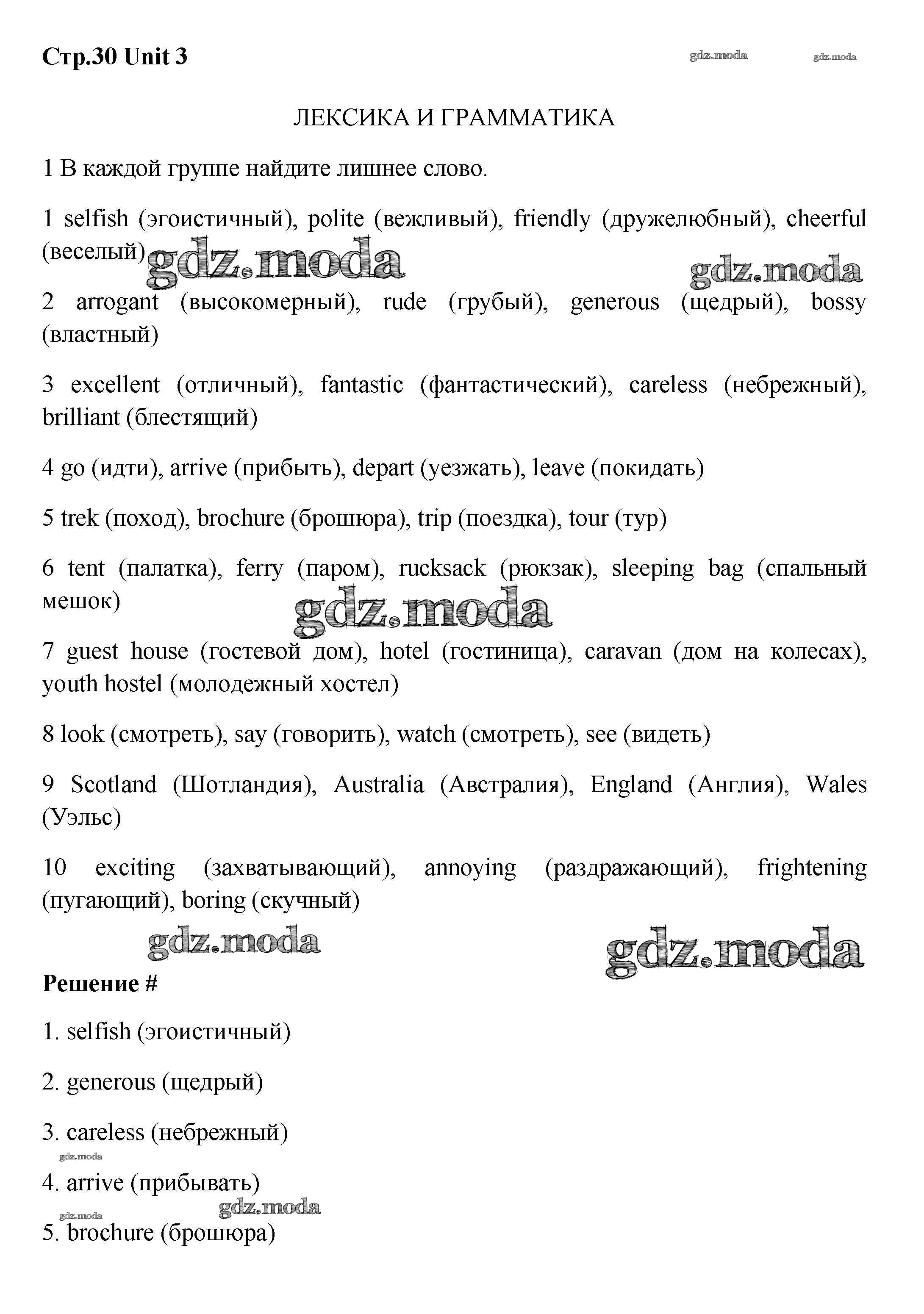ОТВЕТ на задание № стр.30 Учебник по Английскому языку 8 класс Вербицкая Forward