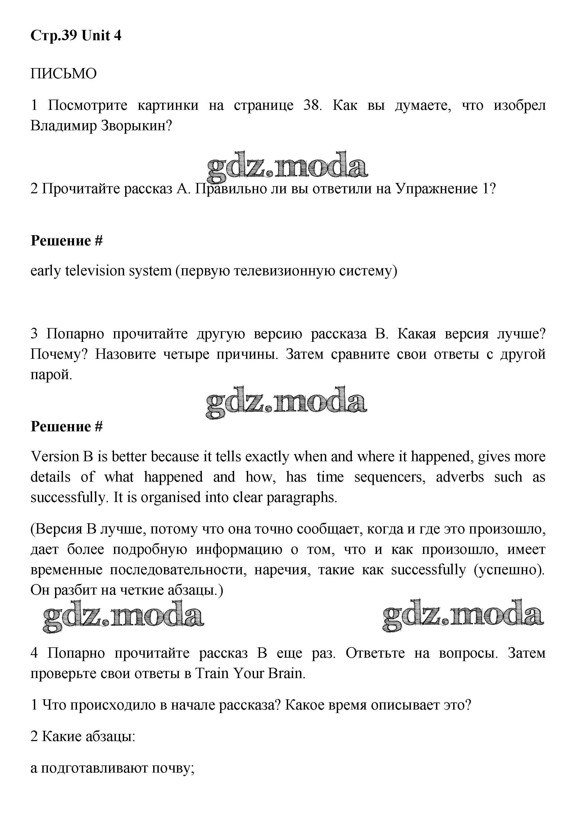 ОТВЕТ на задание № стр.39 Учебник по Английскому языку 8 класс Вербицкая Forward
