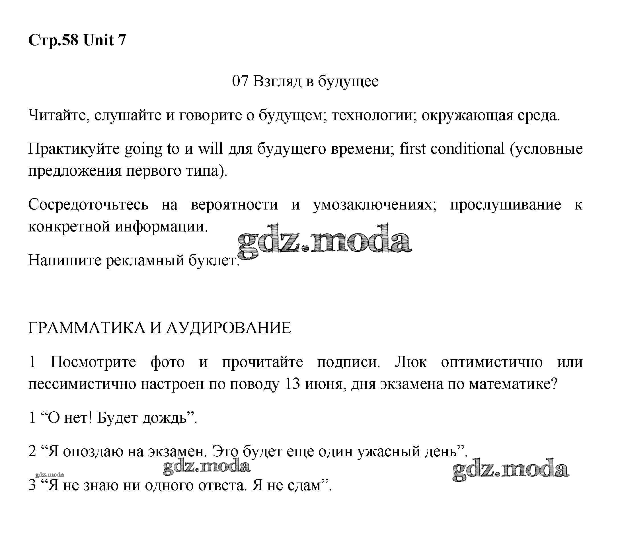 ОТВЕТ на задание № стр.58 Учебник по Английскому языку 8 класс Вербицкая Forward
