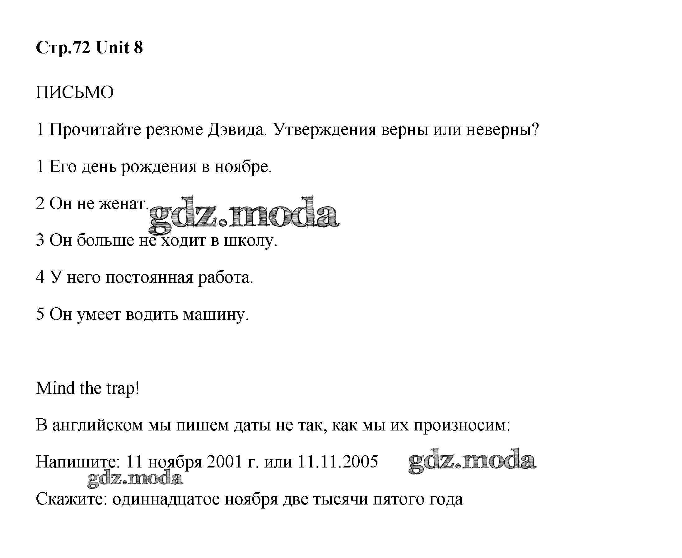 ОТВЕТ на задание № стр.72 Учебник по Английскому языку 8 класс Вербицкая Forward