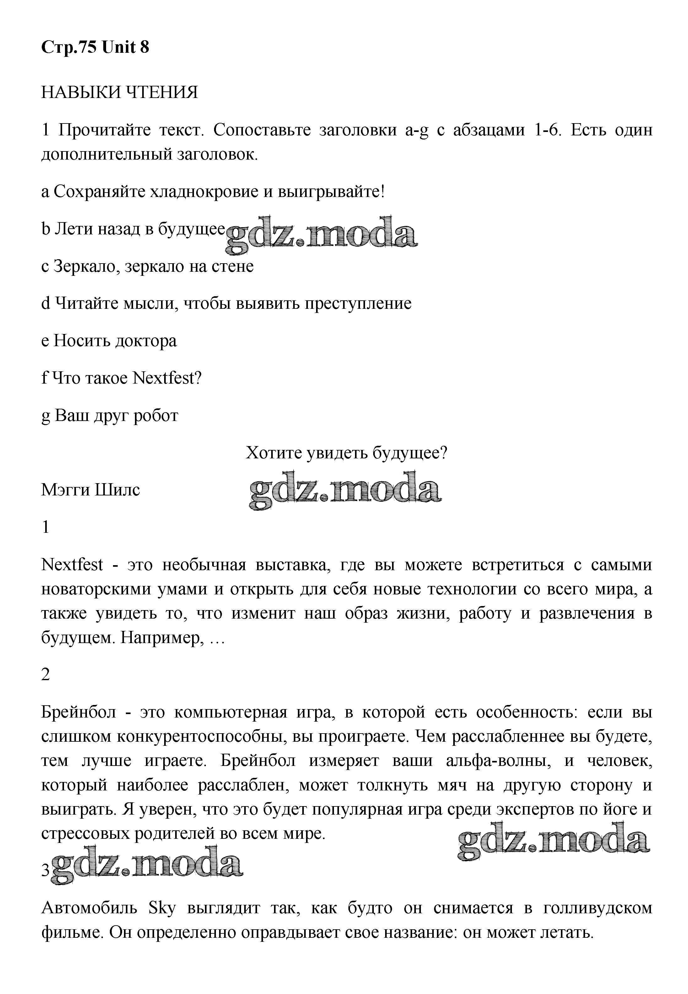 ОТВЕТ на задание № стр.75 Учебник по Английскому языку 8 класс Вербицкая Forward
