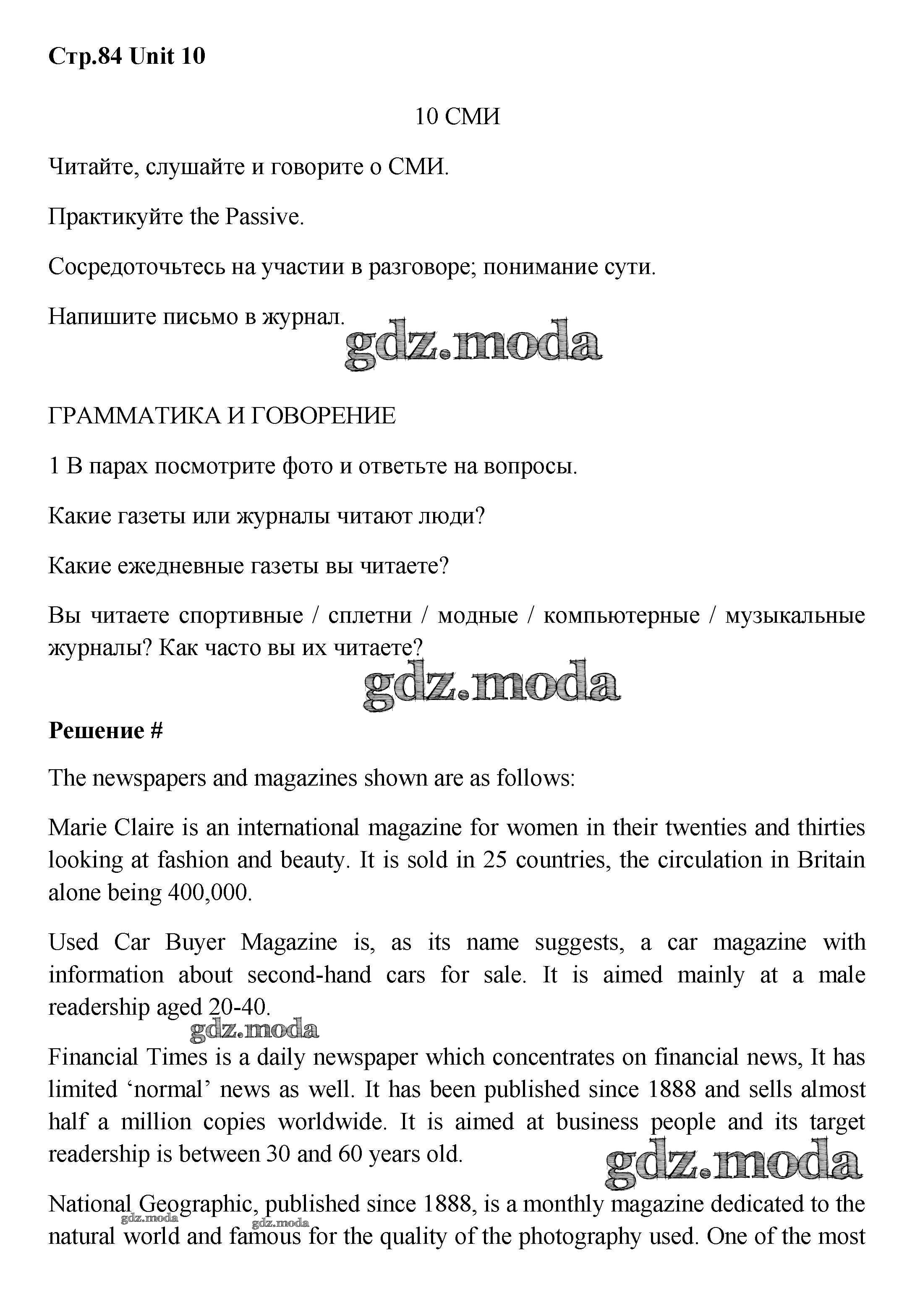 ОТВЕТ на задание № стр.84 Учебник по Английскому языку 8 класс Вербицкая Forward