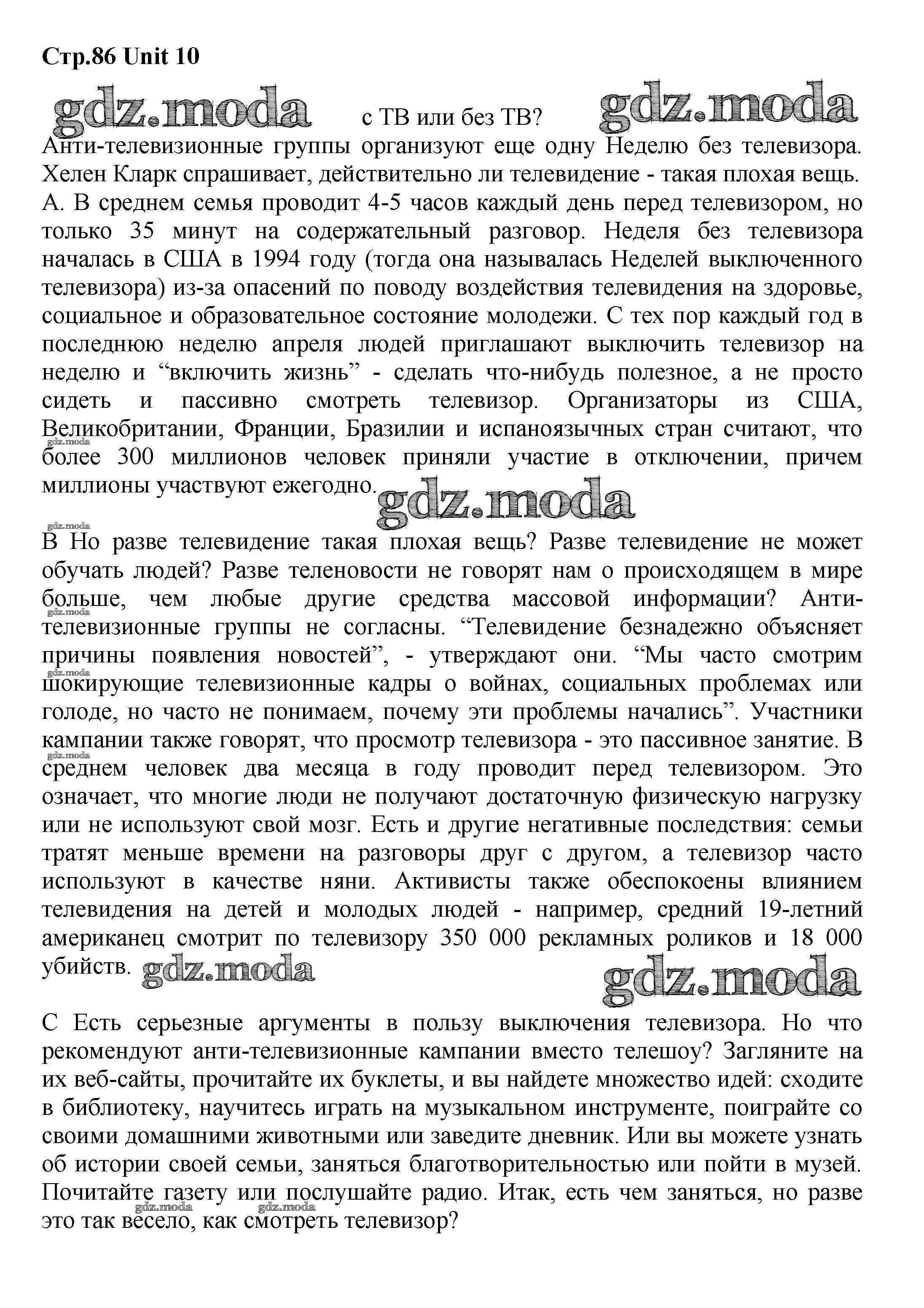 ОТВЕТ на задание № стр.86 Учебник по Английскому языку 8 класс Вербицкая Forward