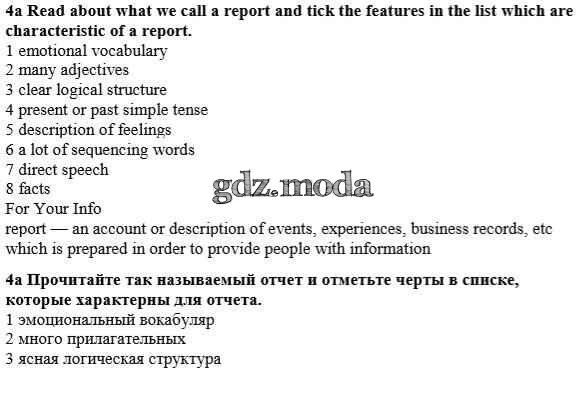 ГДЗ решение к заданию № 4a Английский язык 8 класс New Millennium Дворецкая О.Б. Титул 2014 ФГОС бесплатно на гдз.мода!