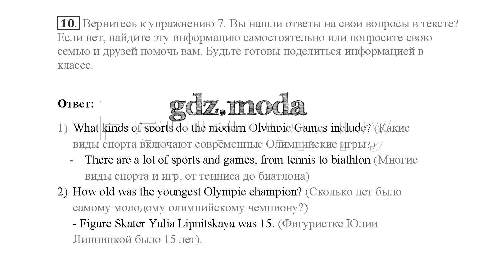 ОТВЕТ на задание № 10 Учебник по Английскому языку 8 класс Афанасьева Rainbow