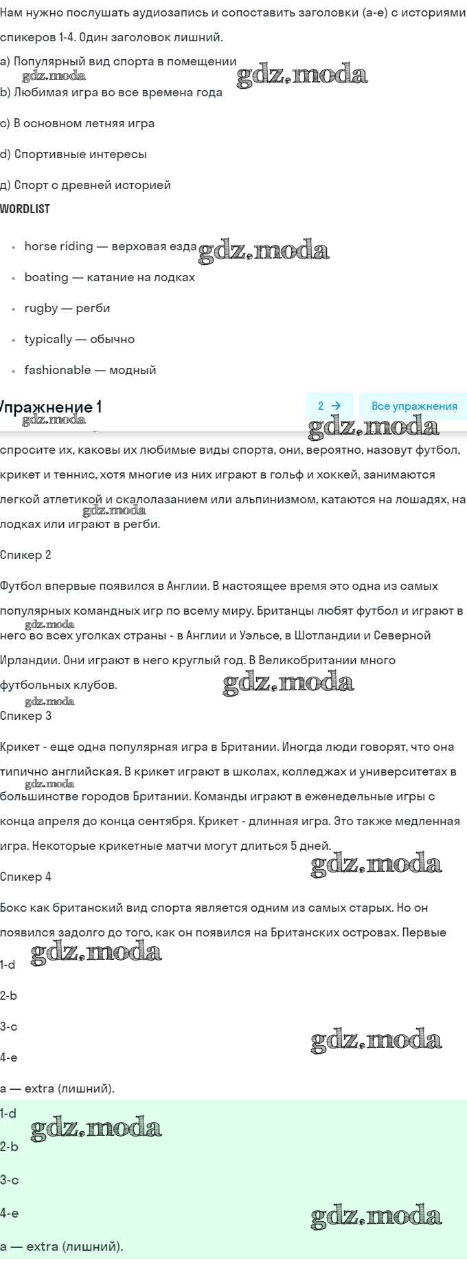 ОТВЕТ на задание № 1 Учебник по Английскому языку 8 класс Афанасьева Rainbow