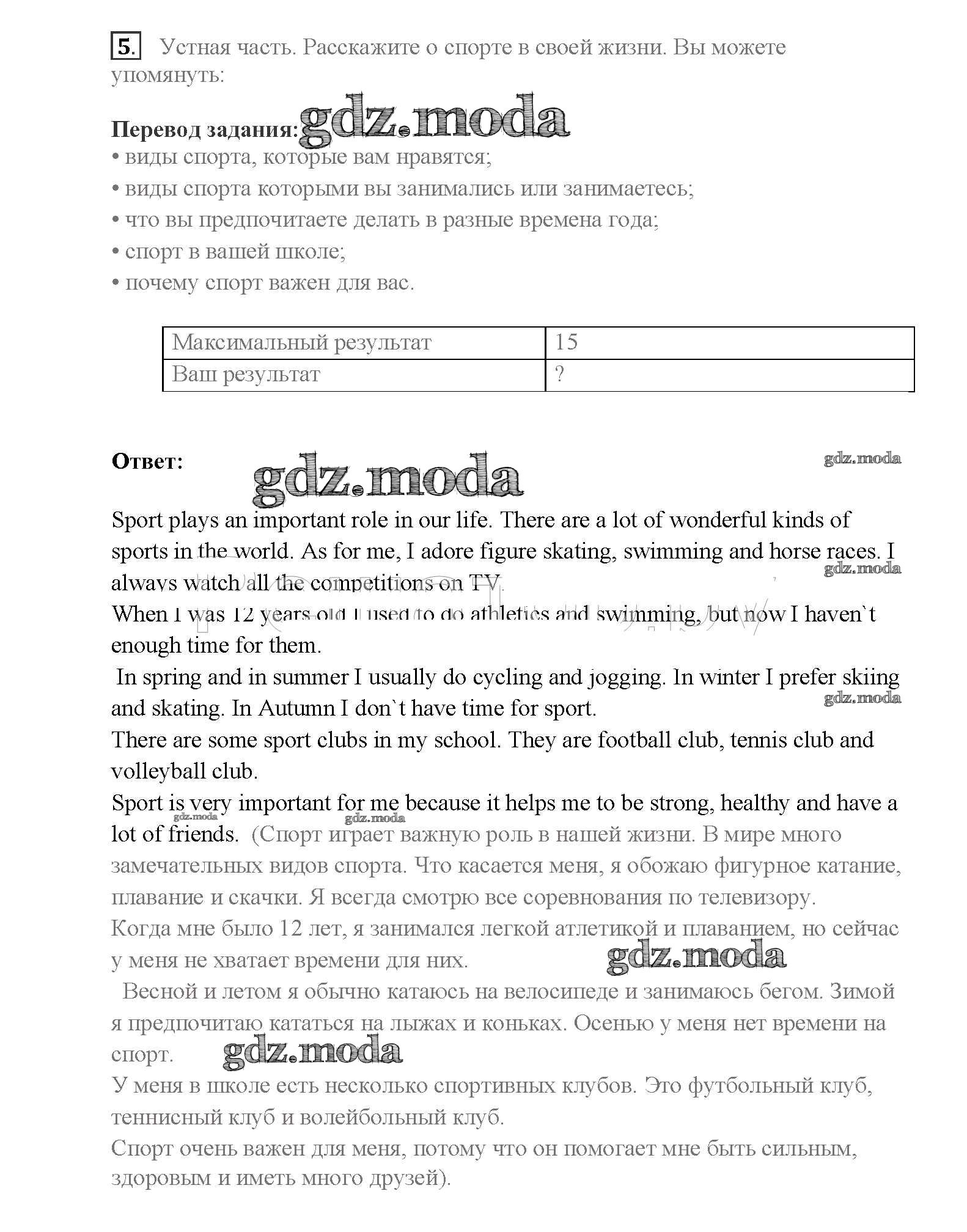 ОТВЕТ на задание № 5 Учебник по Английскому языку 8 класс Афанасьева Rainbow