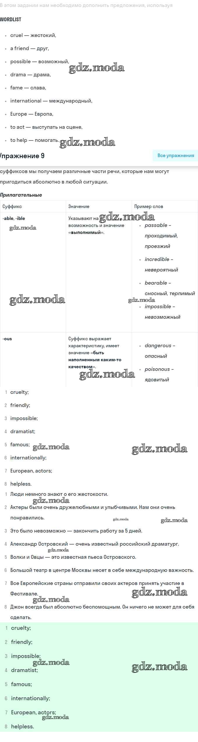 ОТВЕТ на задание № 9 Учебник по Английскому языку 8 класс Афанасьева Rainbow