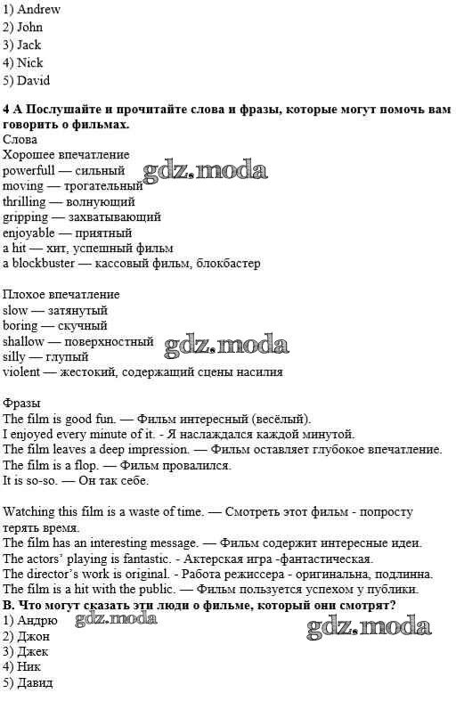 ОТВЕТ на задание № 4 Учебник по Английскому языку 8 класс Афанасьева Rainbow