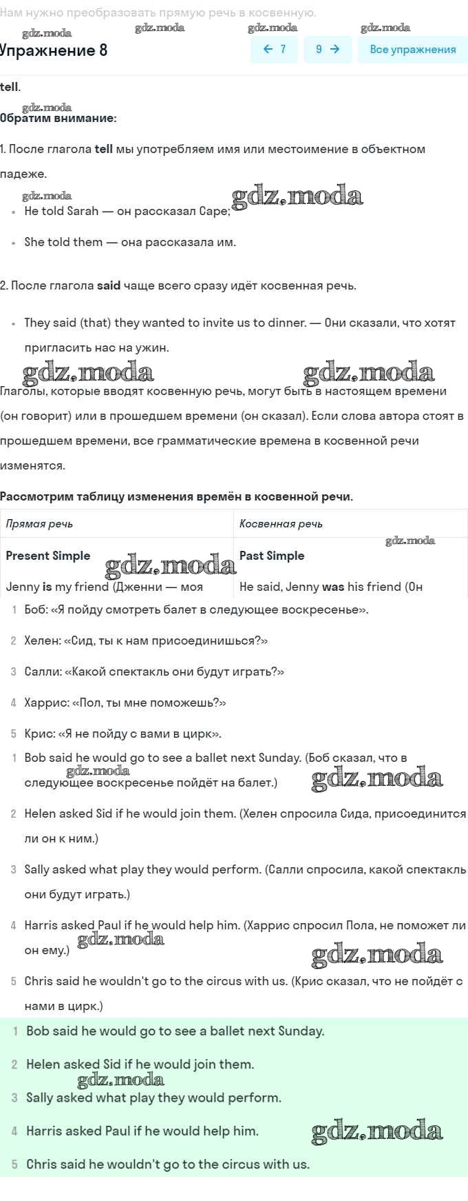 ОТВЕТ на задание № 8 Учебник по Английскому языку 8 класс Афанасьева Rainbow
