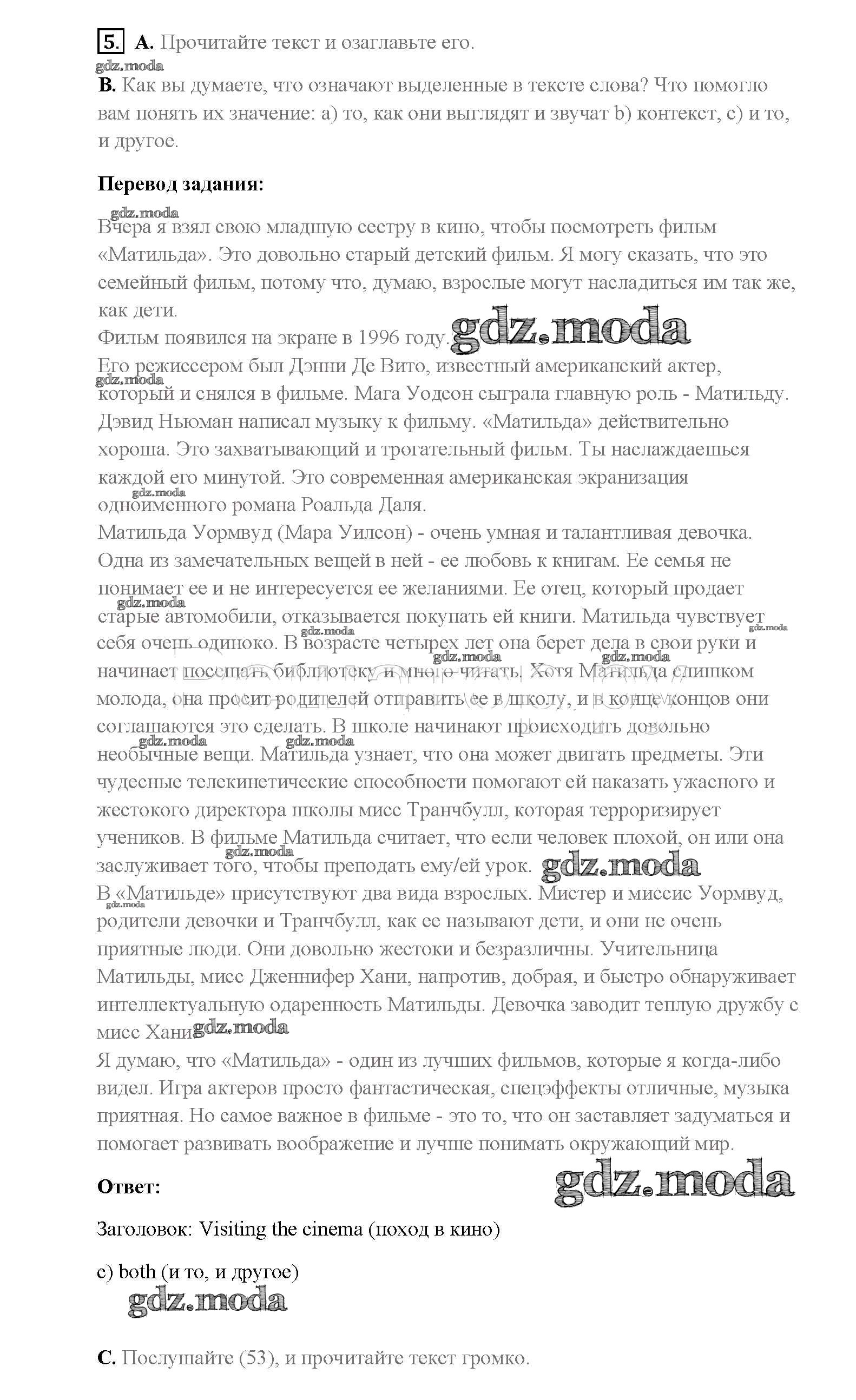 ОТВЕТ на задание № 5 Учебник по Английскому языку 8 класс Афанасьева Rainbow