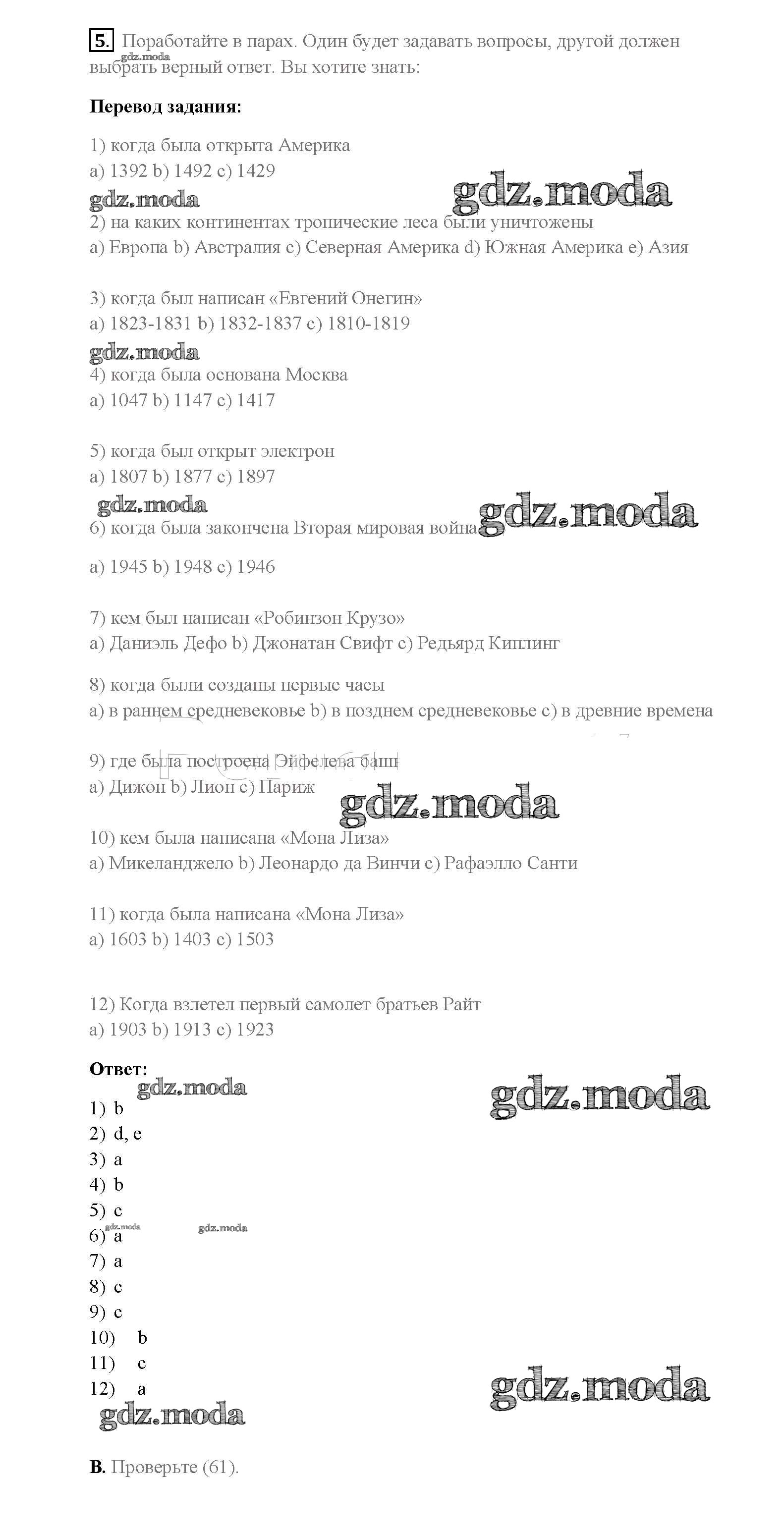 ОТВЕТ на задание № 5 Учебник по Английскому языку 8 класс Афанасьева Rainbow