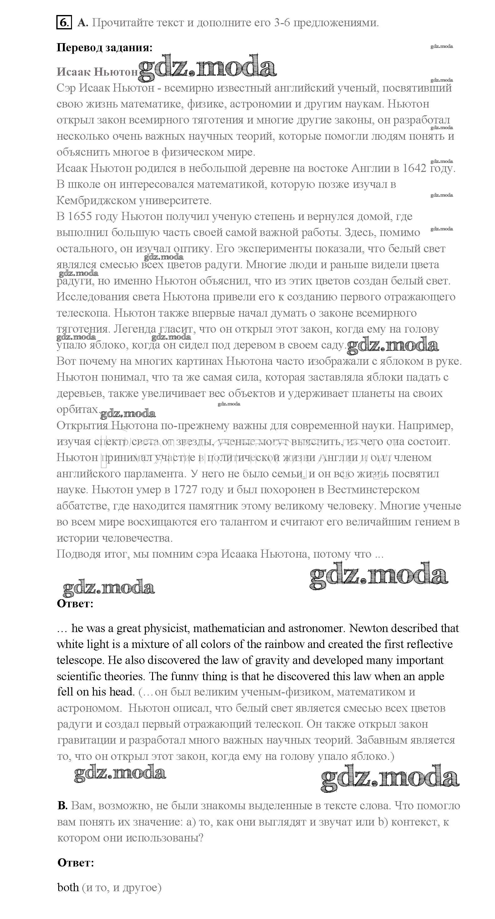 ОТВЕТ на задание № 6 Учебник по Английскому языку 8 класс Афанасьева Rainbow