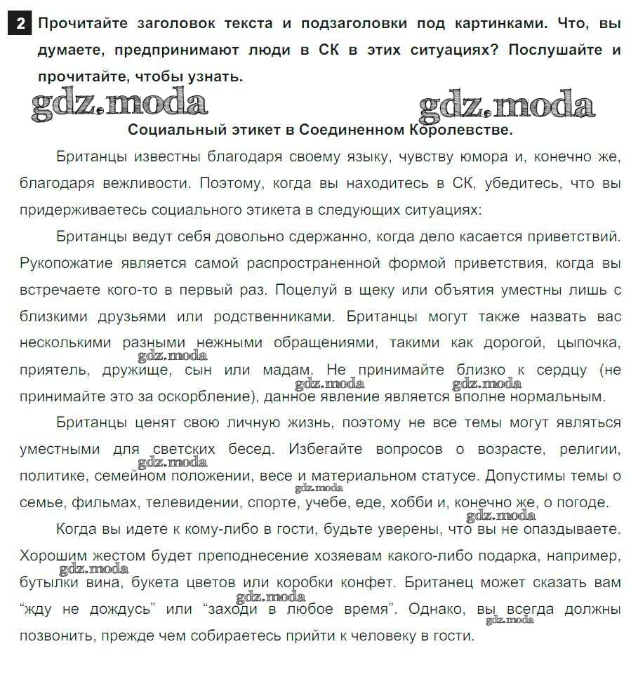 ОТВЕТ на задание № 2 Учебник по Английскому языку 8 класс Ваулина Spotlight
