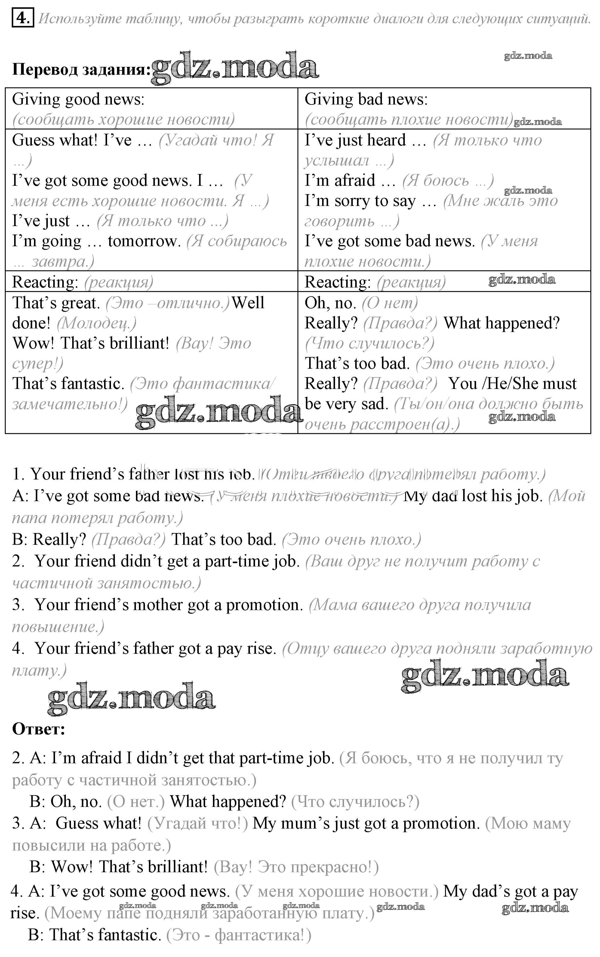 ОТВЕТ на задание № 4 Учебник по Английскому языку 8 класс Ваулина Spotlight