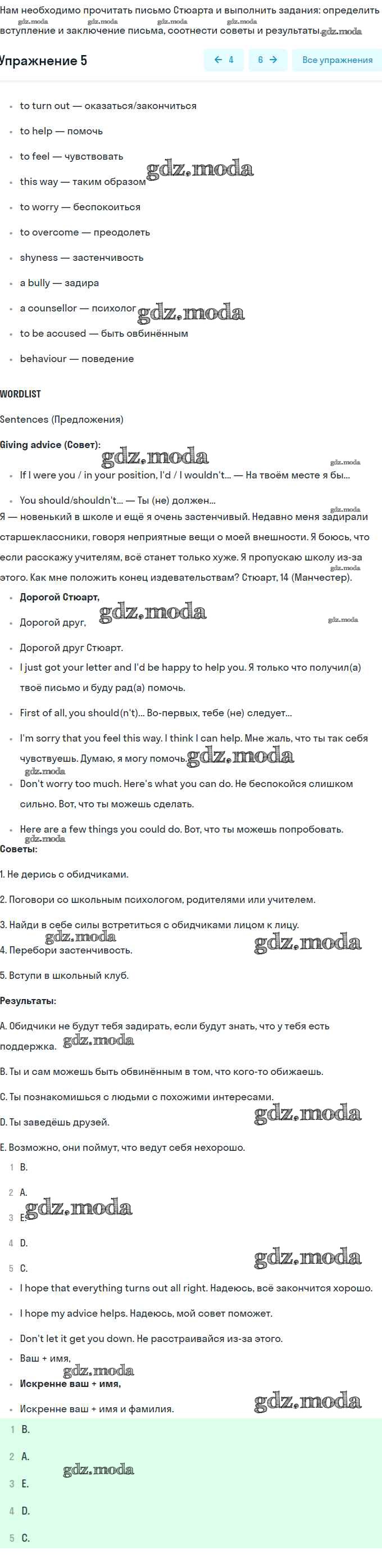 ОТВЕТ на задание № 5 Учебник по Английскому языку 8 класс Ваулина Spotlight