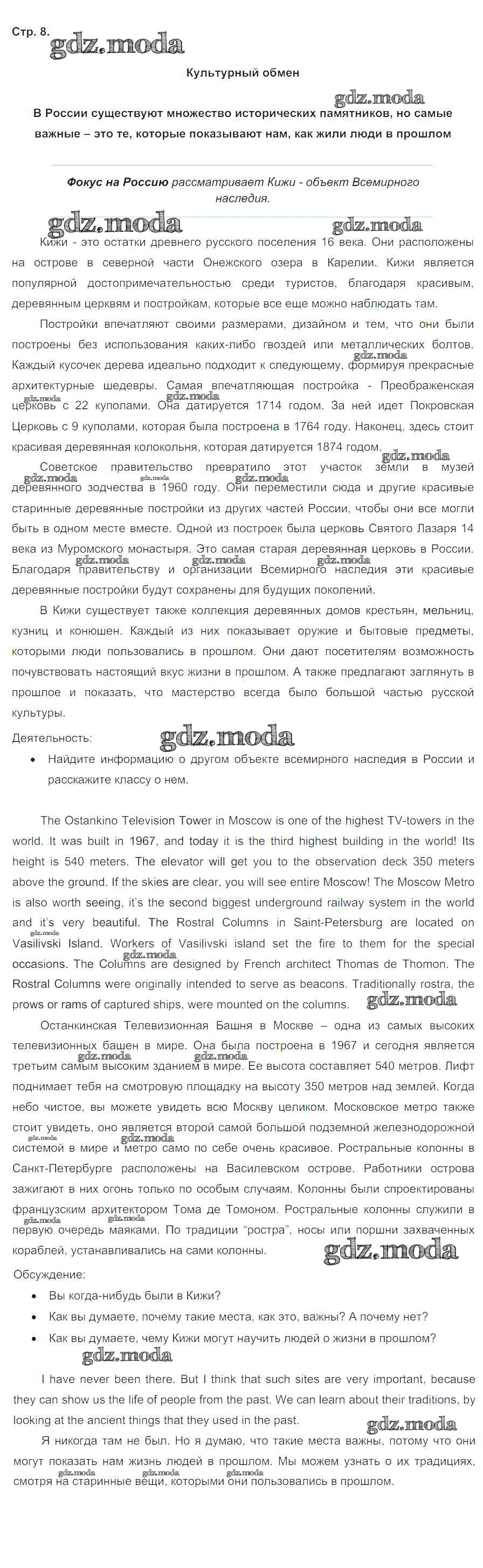 ОТВЕТ на задание № 8 Учебник по Английскому языку 8 класс Ваулина Spotlight