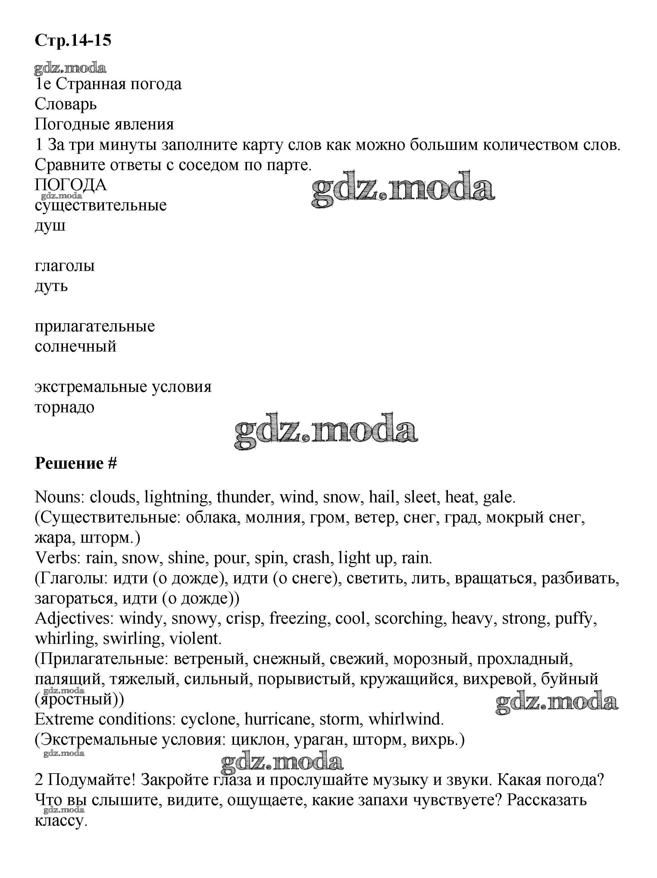 ГДЗ решение к заданию № стр.14-15 Английский язык 8 класс Starlight Баранова К.М. Просвещение 2016 Углубленный уровень ФГОС бесплатно на гдз.мода!