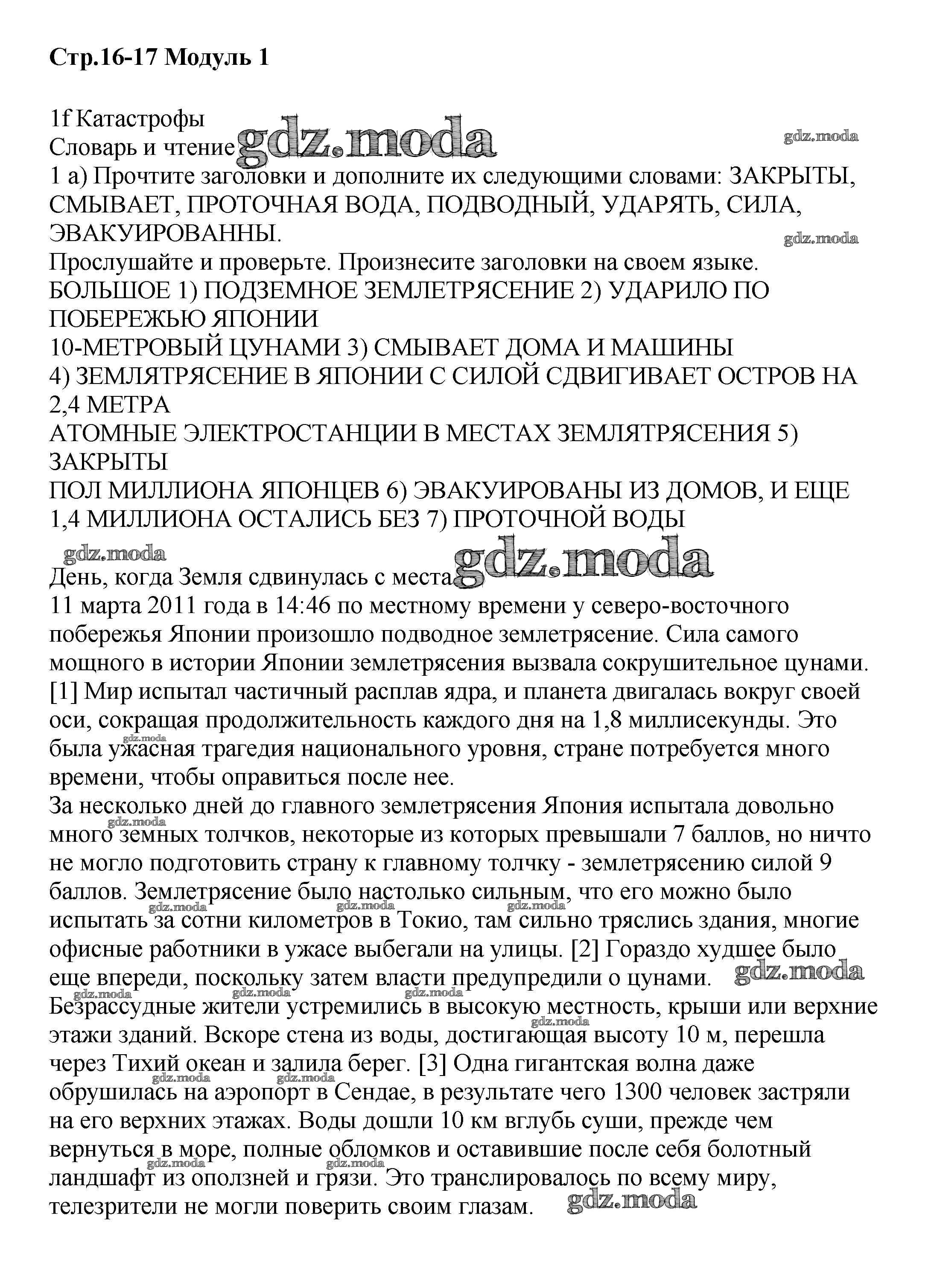 ГДЗ решение к заданию № стр.16-17 Английский язык 8 класс Starlight Баранова К.М. Просвещение 2016 Углубленный уровень ФГОС бесплатно на гдз.мода!