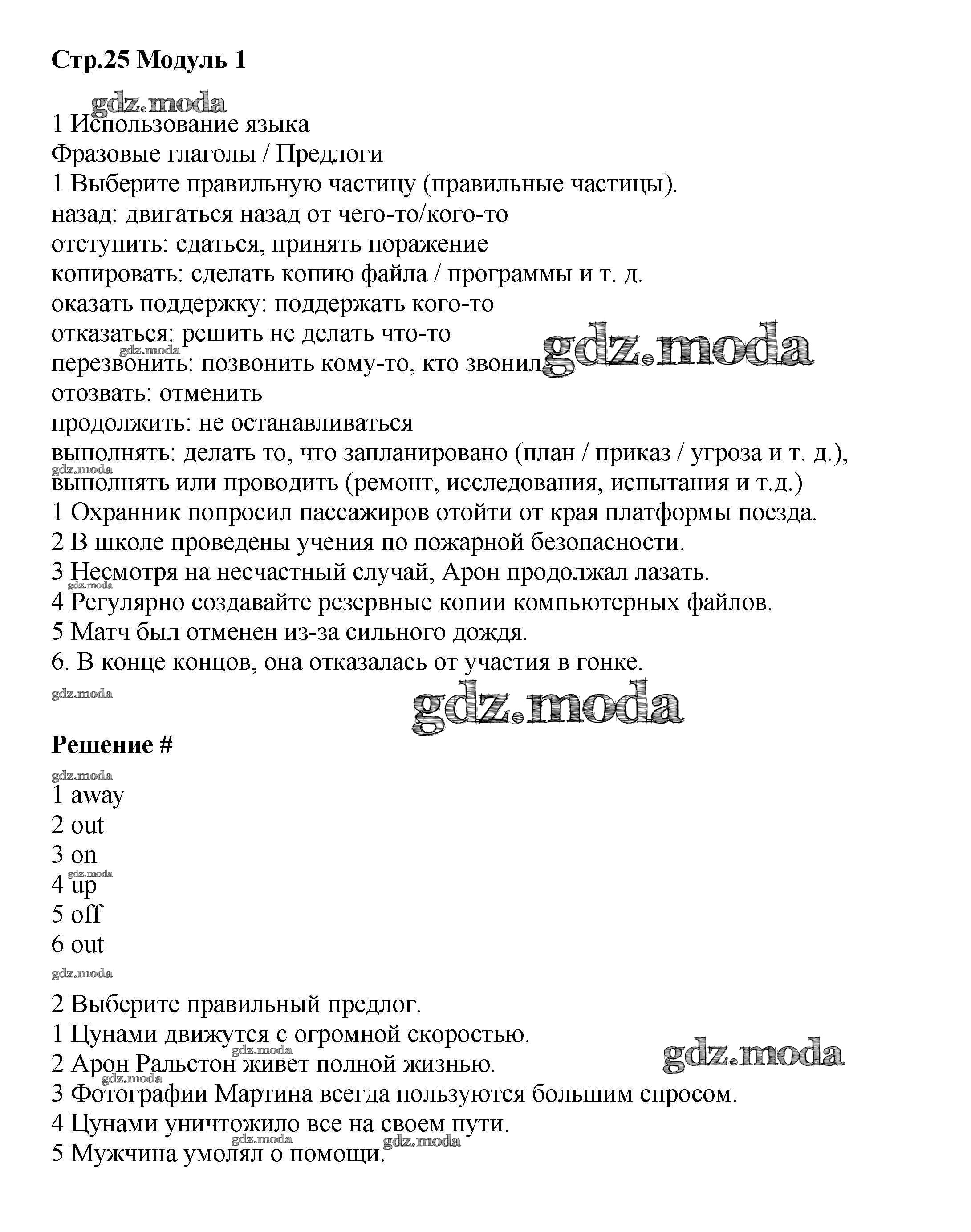 ГДЗ решение к заданию № стр.25 Английский язык 8 класс Starlight Баранова К.М. Просвещение 2016 Углубленный уровень ФГОС бесплатно на гдз.мода!