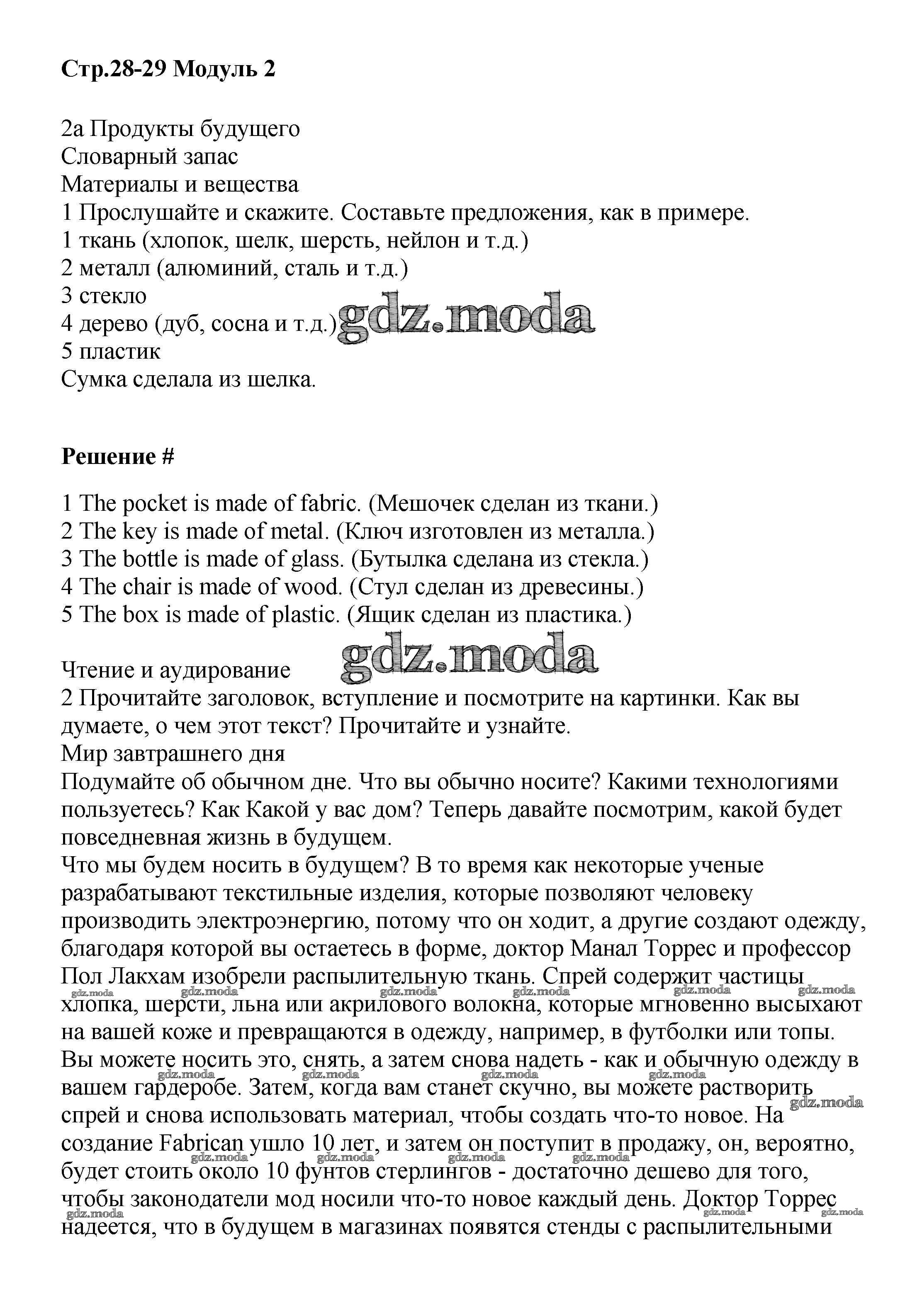 ГДЗ решение к заданию № стр.28-29 Английский язык 8 класс Starlight Баранова К.М. Просвещение 2016 Углубленный уровень ФГОС бесплатно на гдз.мода!