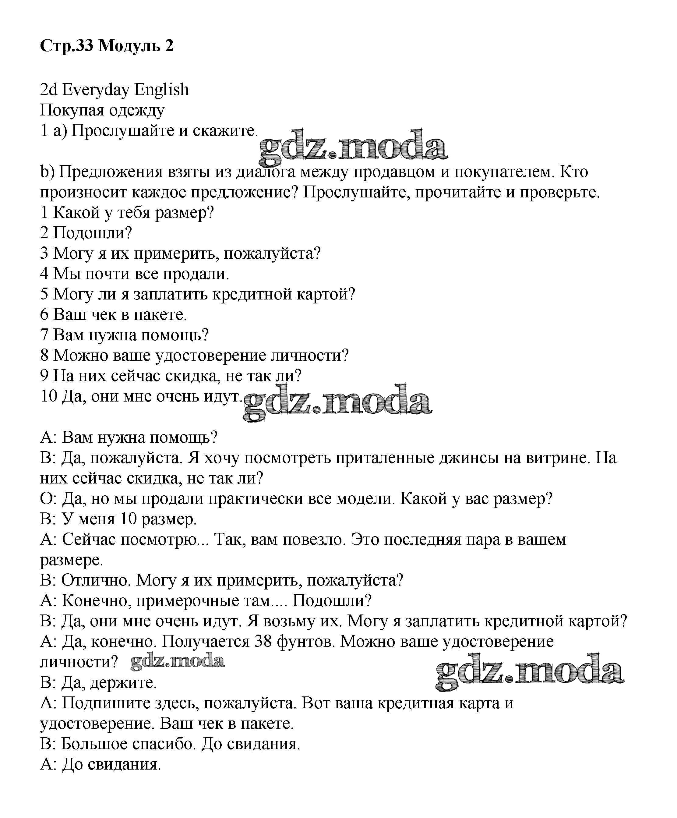 ГДЗ решение к заданию № стр.33 Английский язык 8 класс Starlight Баранова К.М. Просвещение 2016 Углубленный уровень ФГОС бесплатно на гдз.мода!