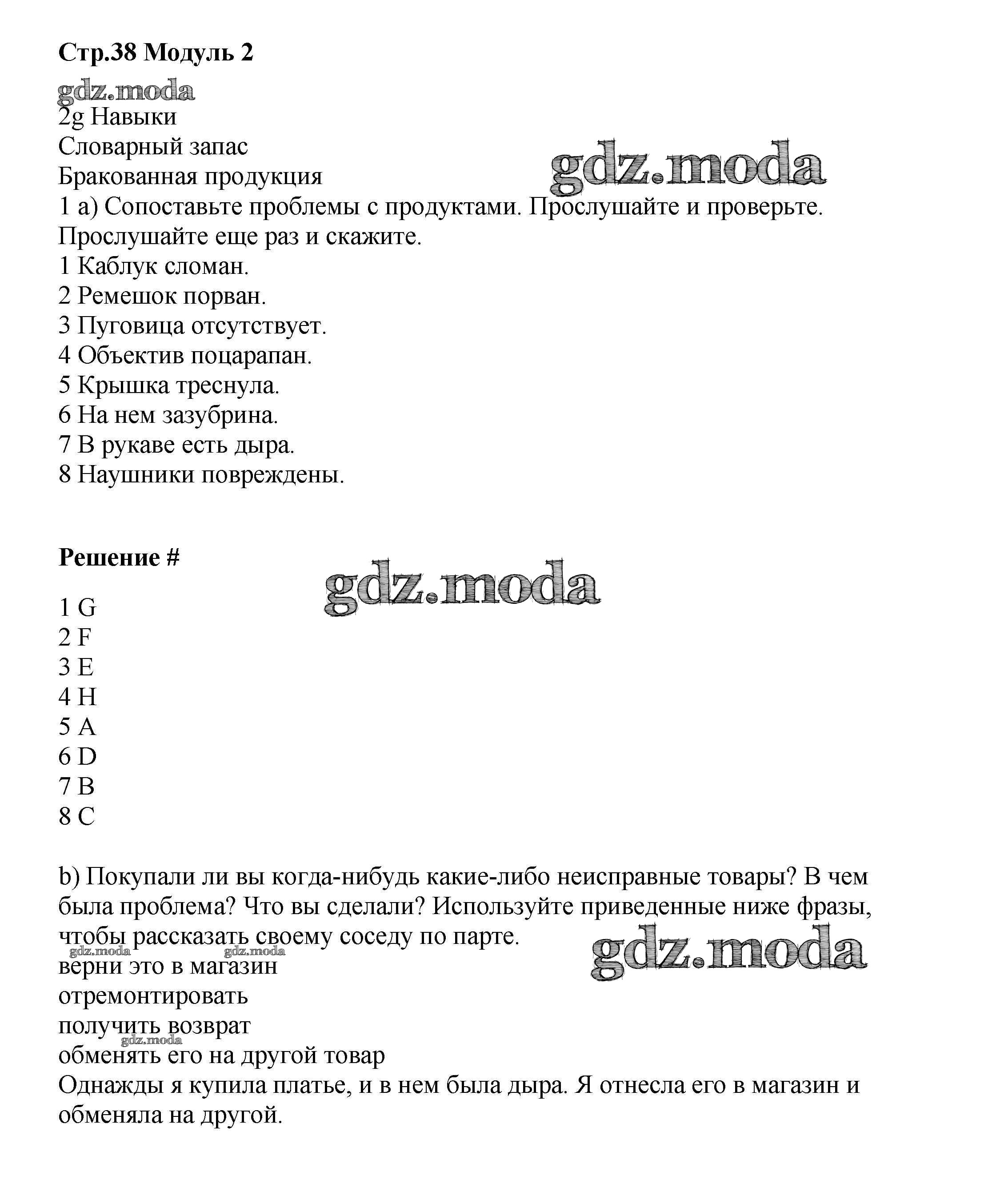 ГДЗ решение к заданию № стр.38 Английский язык 8 класс Starlight Баранова К.М. Просвещение 2016 Углубленный уровень ФГОС бесплатно на гдз.мода!