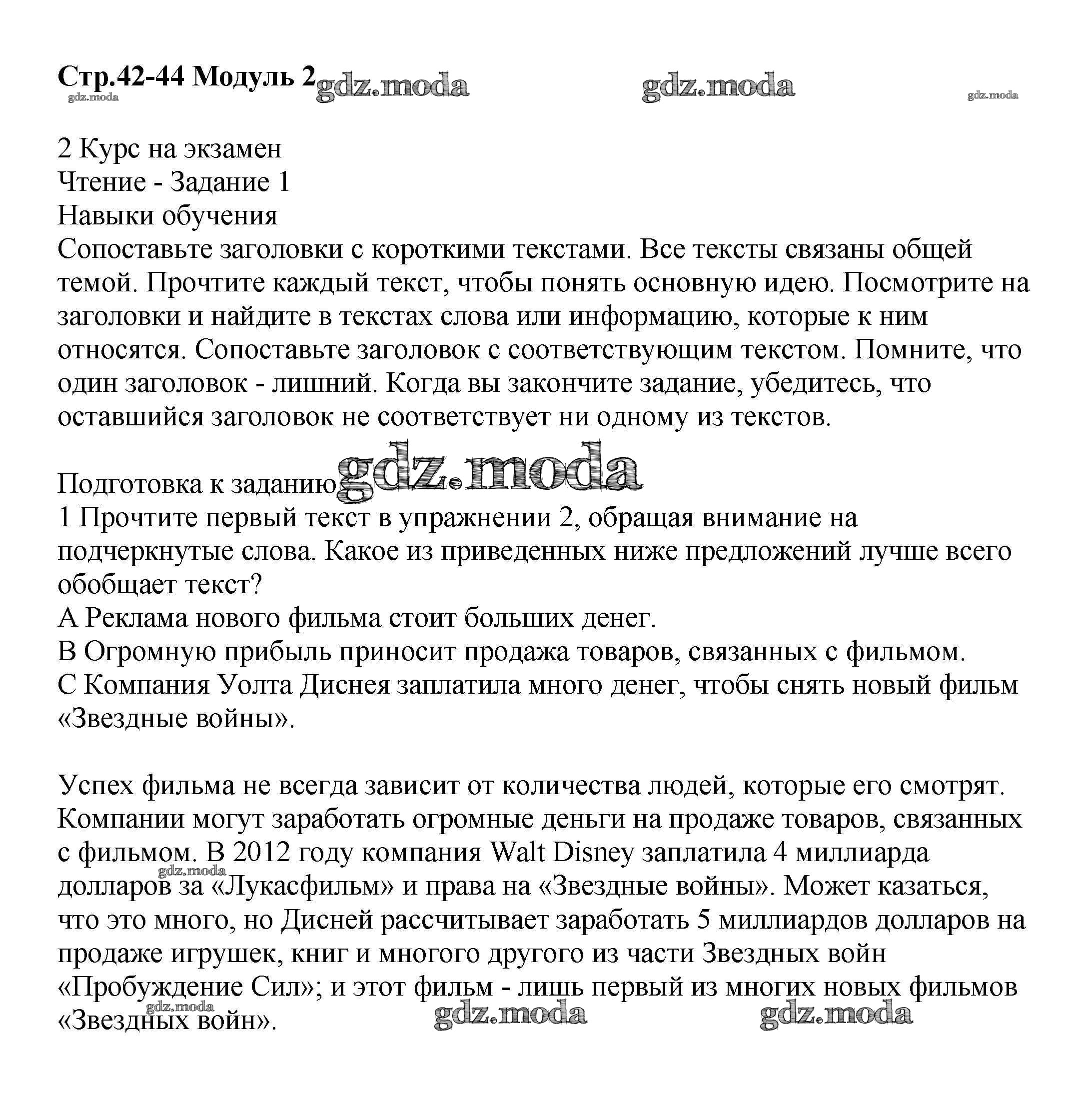 ГДЗ решение к заданию № стр.42-44 Английский язык 8 класс Starlight Баранова К.М. Просвещение 2016 Углубленный уровень ФГОС бесплатно на гдз.мода!