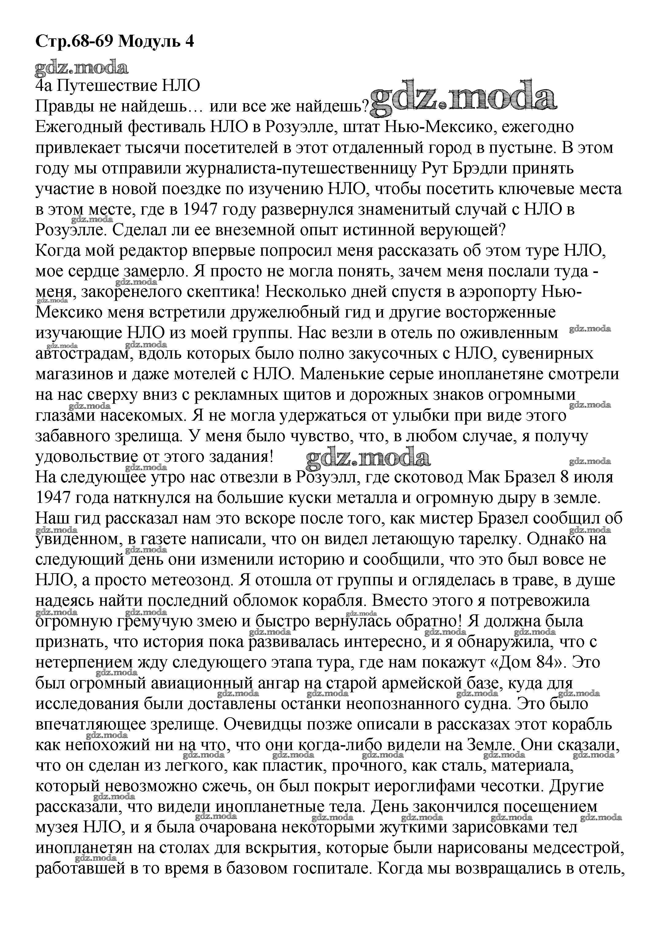 ГДЗ решение к заданию № стр.68-69 Английский язык 8 класс Starlight Баранова К.М. Просвещение 2016 Углубленный уровень ФГОС бесплатно на гдз.мода!
