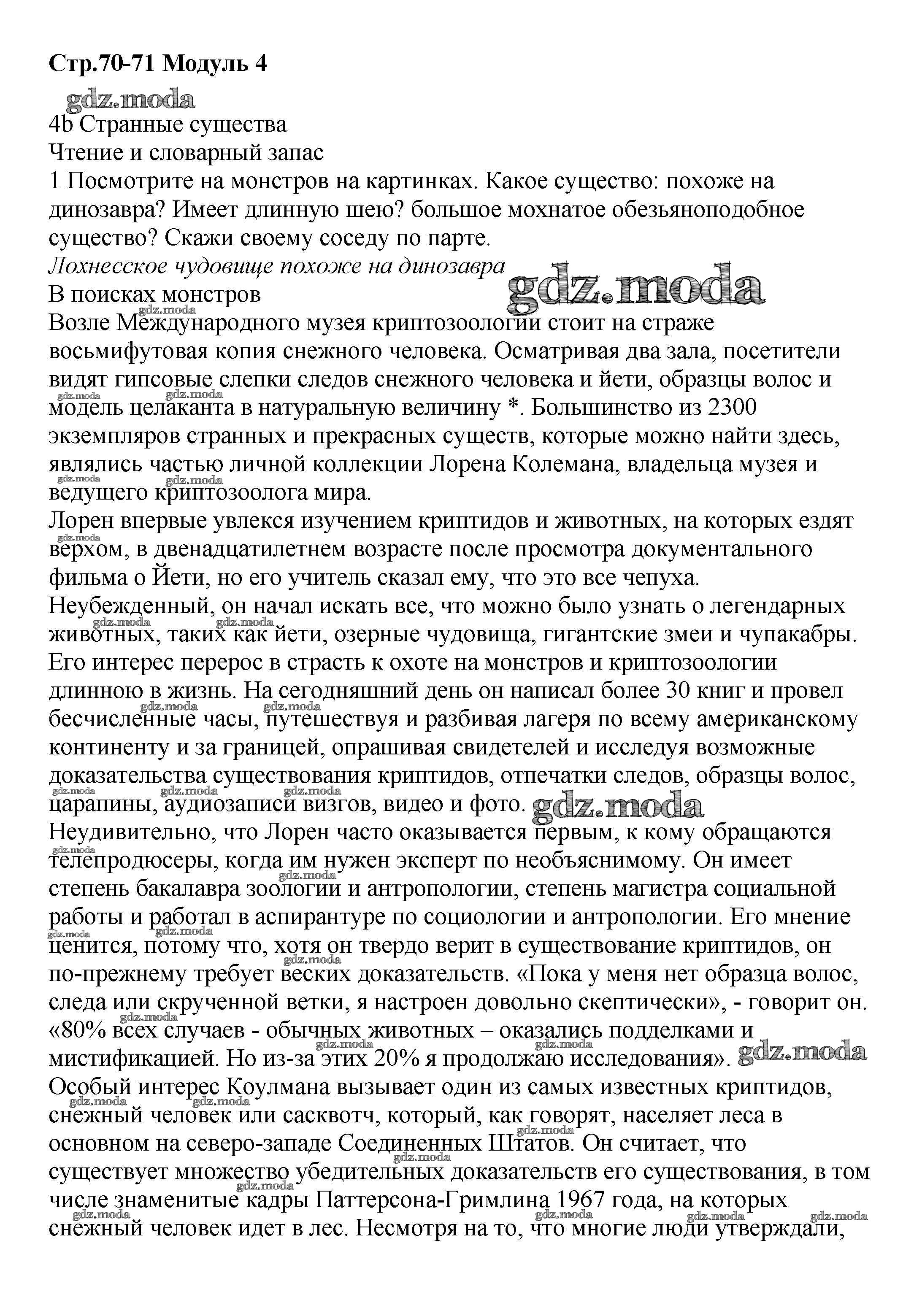 ГДЗ решение к заданию № стр.70-71 Английский язык 8 класс Starlight Баранова К.М. Просвещение 2016 Углубленный уровень ФГОС бесплатно на гдз.мода!