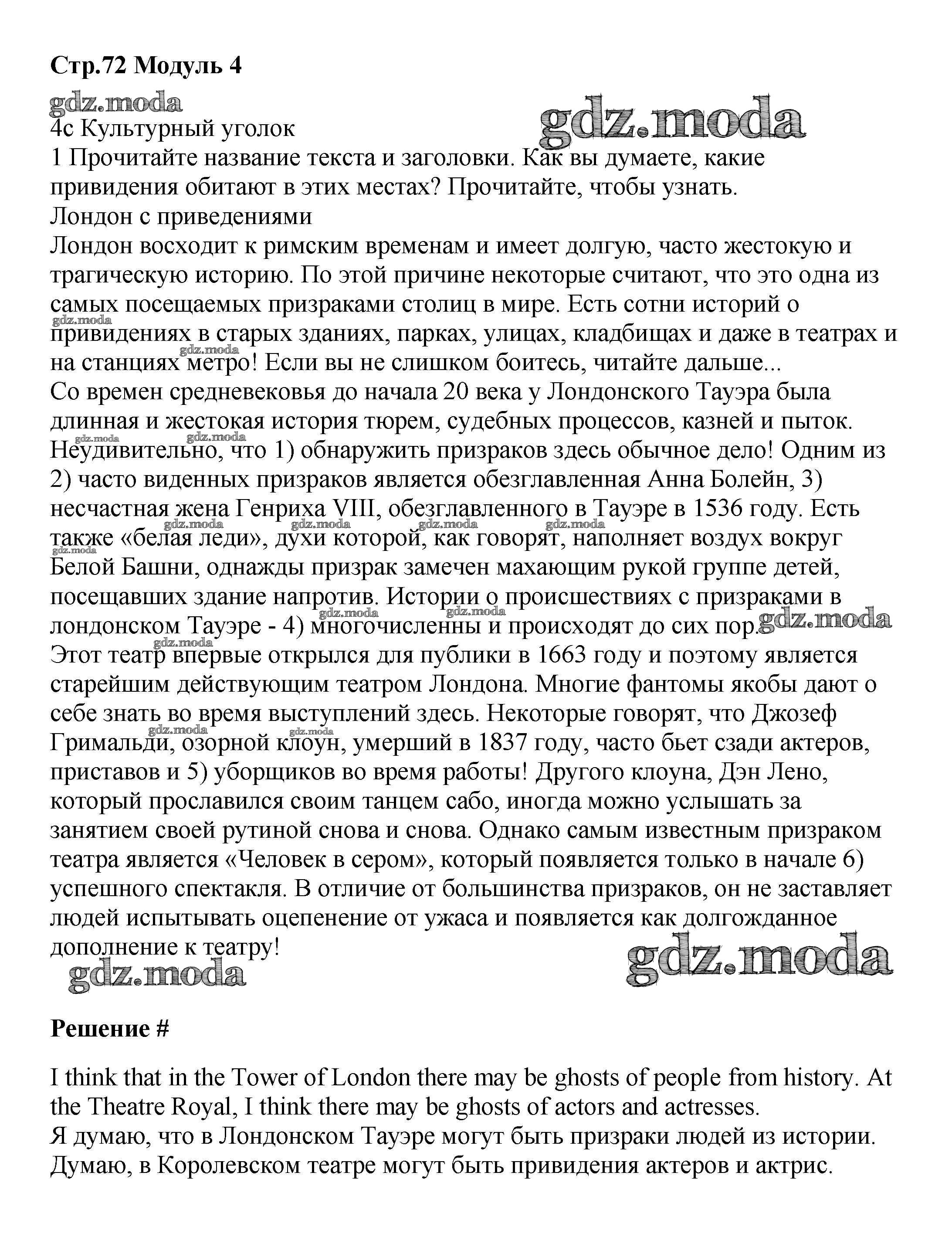 ГДЗ решение к заданию № стр.72 Английский язык 8 класс Starlight Баранова К.М. Просвещение 2016 Углубленный уровень ФГОС бесплатно на гдз.мода!