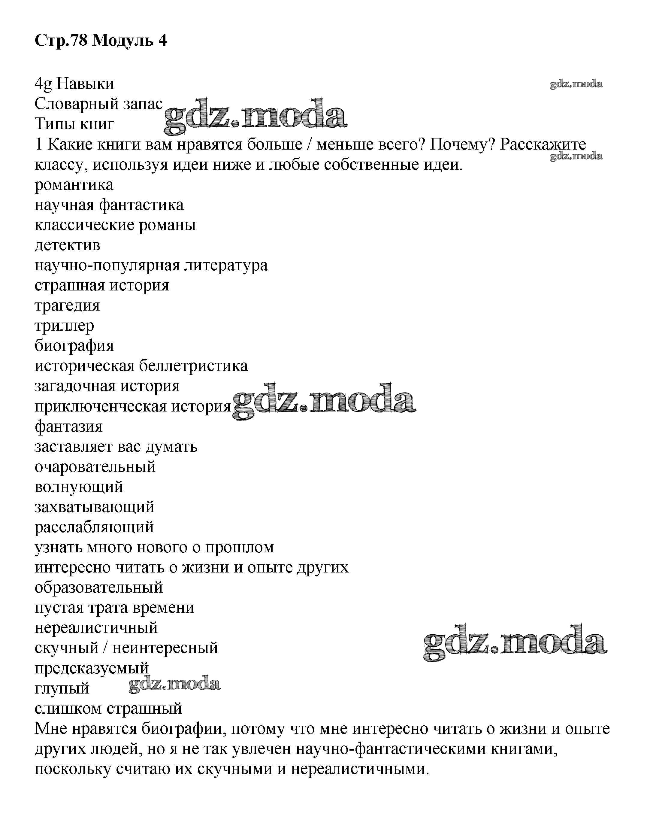 ГДЗ решение к заданию № стр.78 Английский язык 8 класс Starlight Баранова К.М. Просвещение 2016 Углубленный уровень ФГОС бесплатно на гдз.мода!