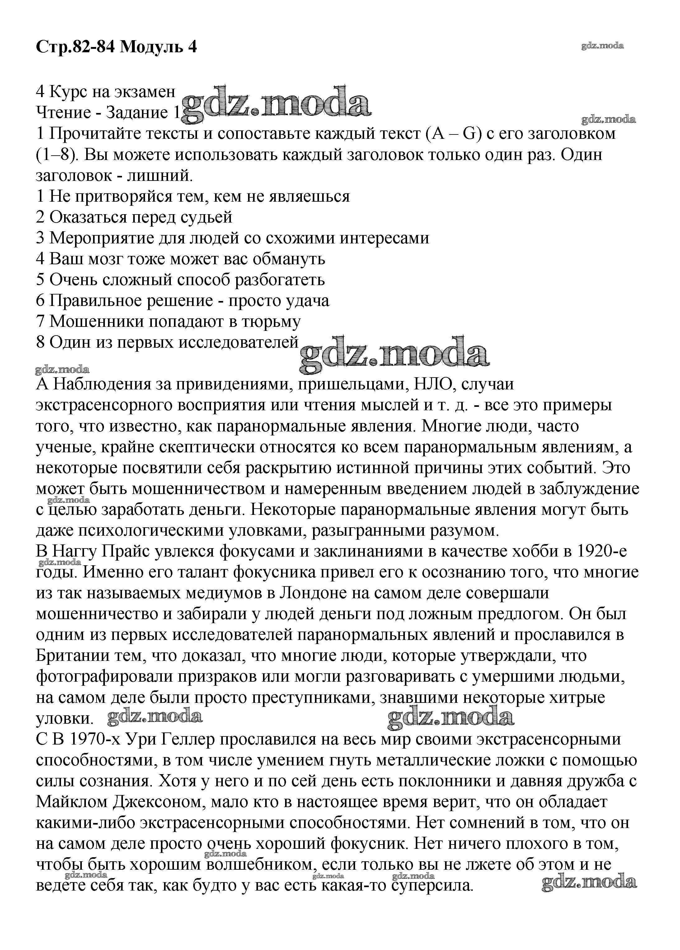 ГДЗ решение к заданию № стр.82-84 Английский язык 8 класс Starlight Баранова К.М. Просвещение 2016 Углубленный уровень ФГОС бесплатно на гдз.мода!