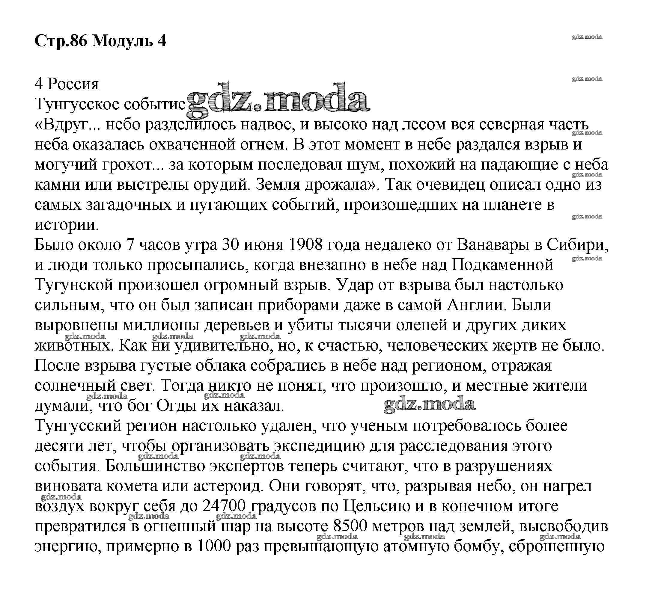 ГДЗ решение к заданию № стр.86 Английский язык 8 класс Starlight Баранова К.М. Просвещение 2016 Углубленный уровень ФГОС бесплатно на гдз.мода!