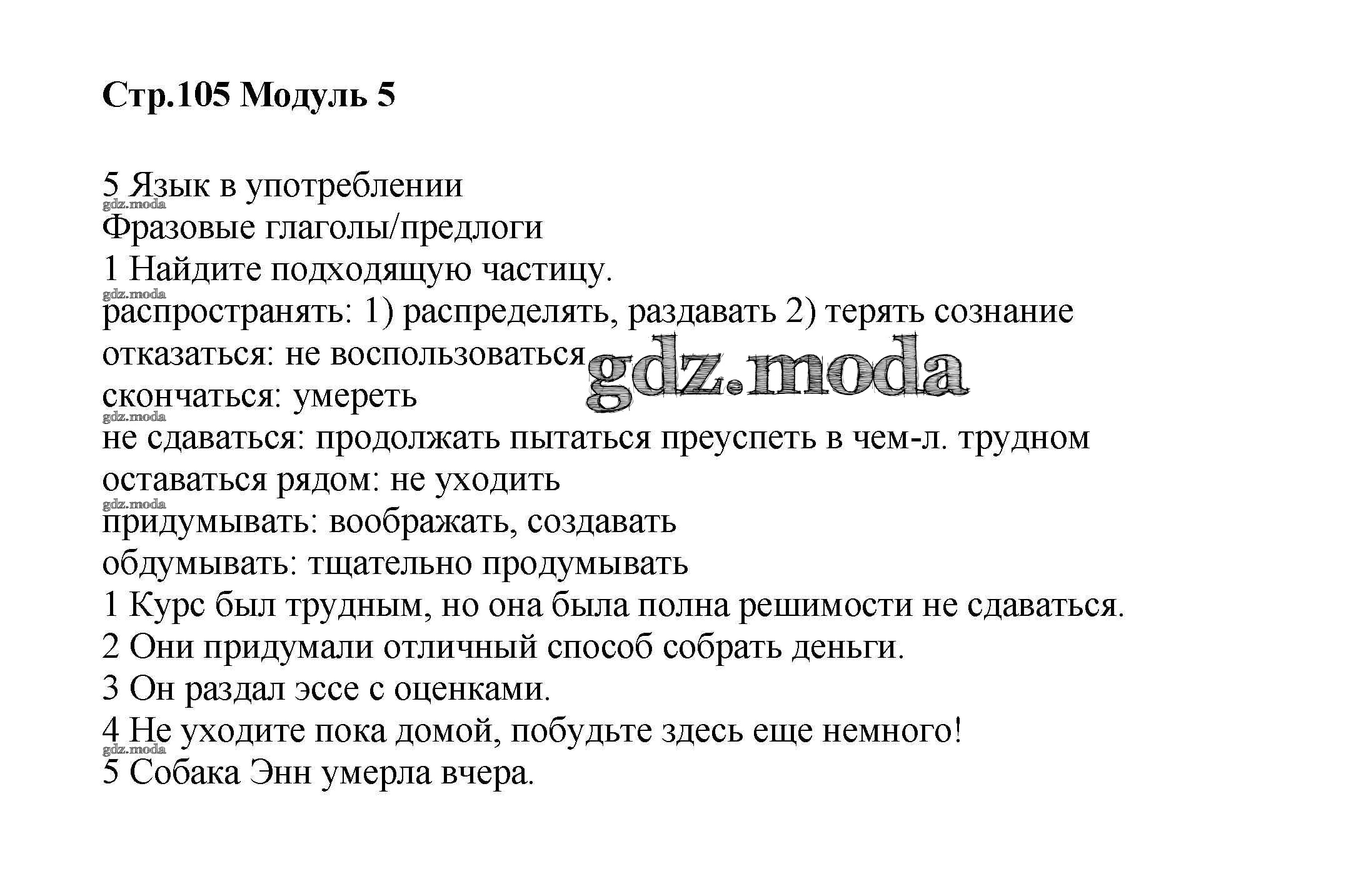 ГДЗ решение к заданию № стр.105 Английский язык 8 класс Starlight Баранова К.М. Просвещение 2016 Углубленный уровень ФГОС бесплатно на гдз.мода!