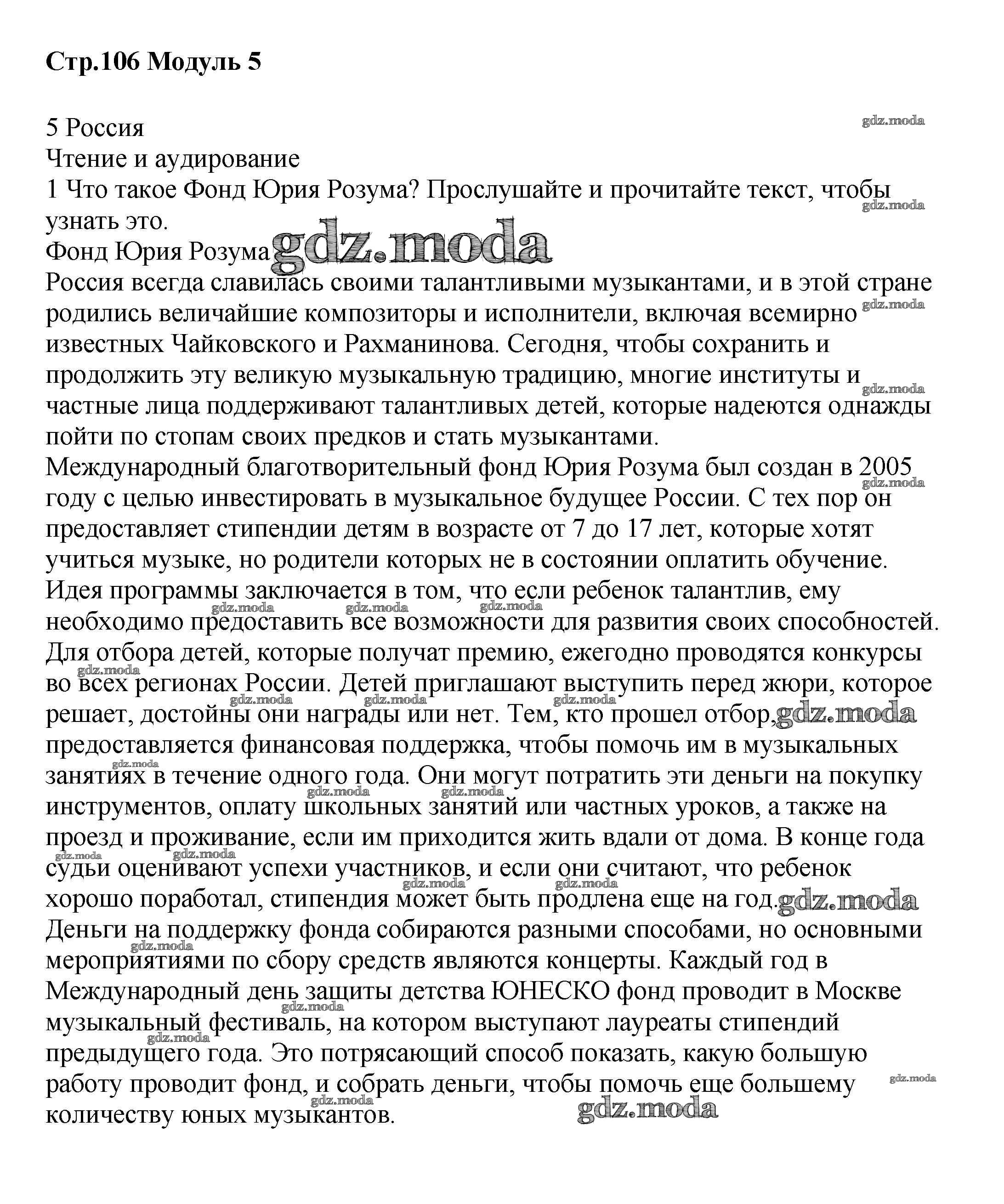 ГДЗ решение к заданию № стр.106 Английский язык 8 класс Starlight Баранова К.М. Просвещение 2016 Углубленный уровень ФГОС бесплатно на гдз.мода!