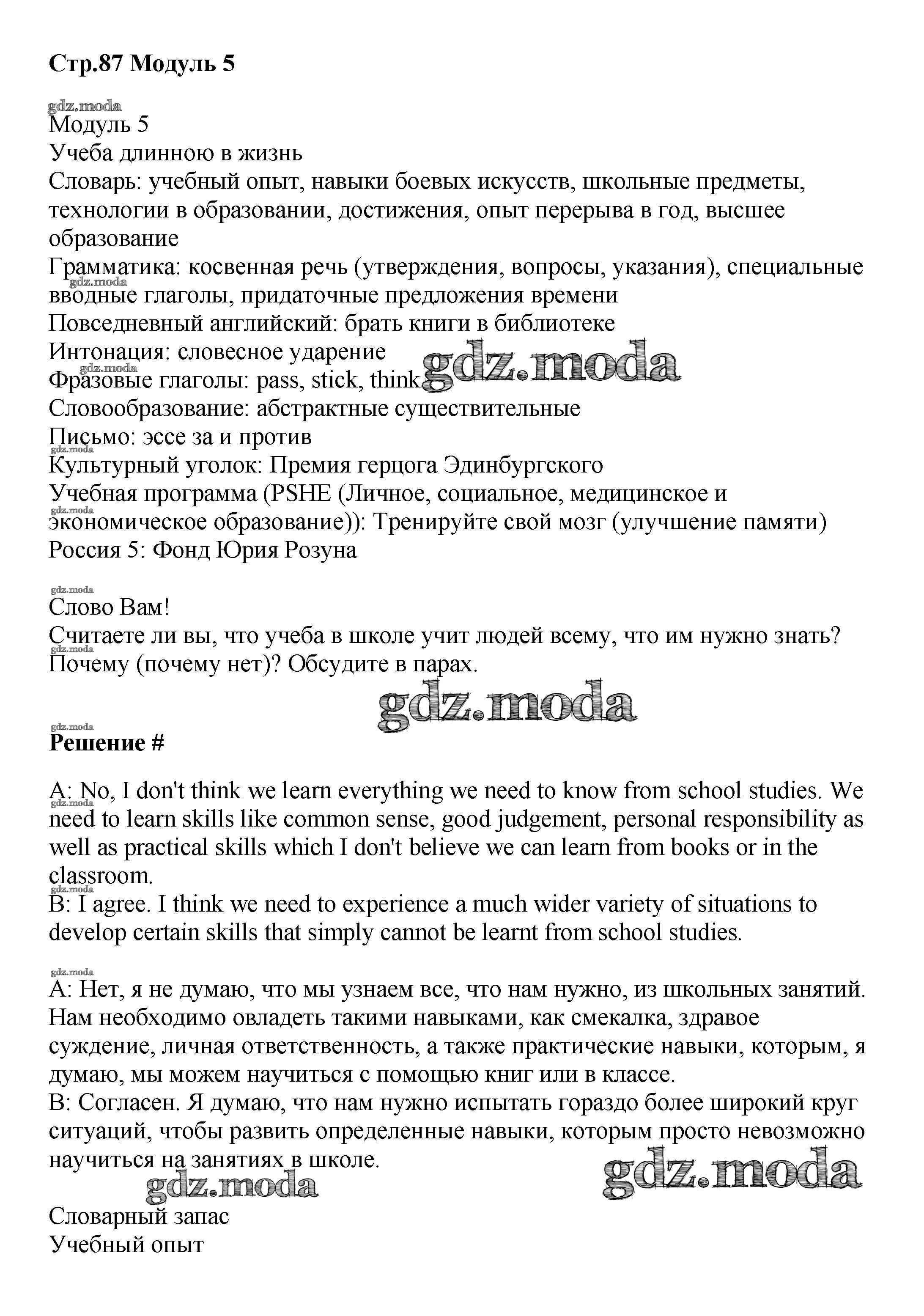 ГДЗ решение к заданию № стр.87 Английский язык 8 класс Starlight Баранова К.М. Просвещение 2016 Углубленный уровень ФГОС бесплатно на гдз.мода!